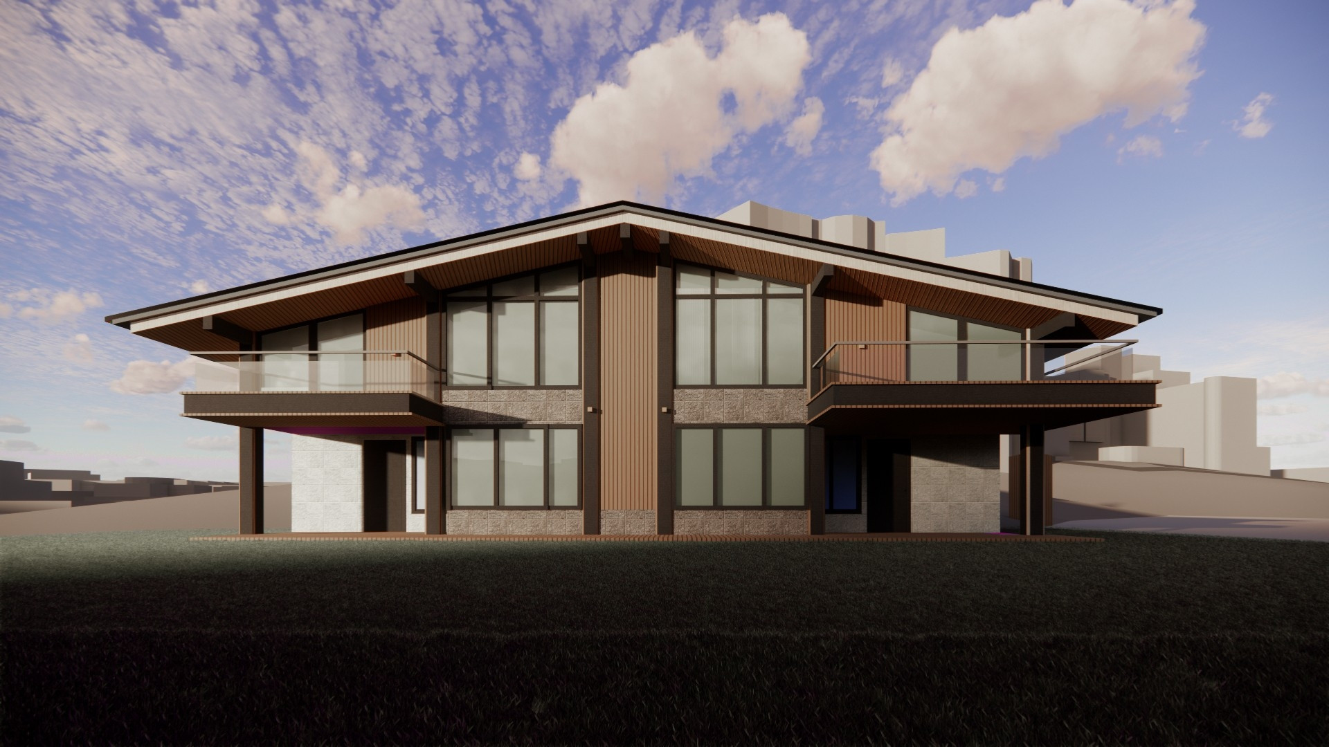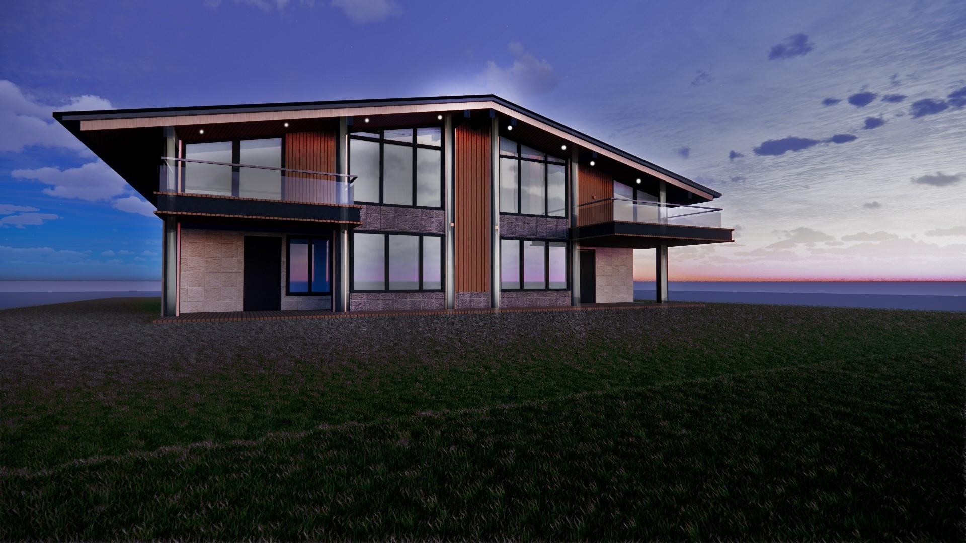 -панорамные окна практически по всему периметру дома