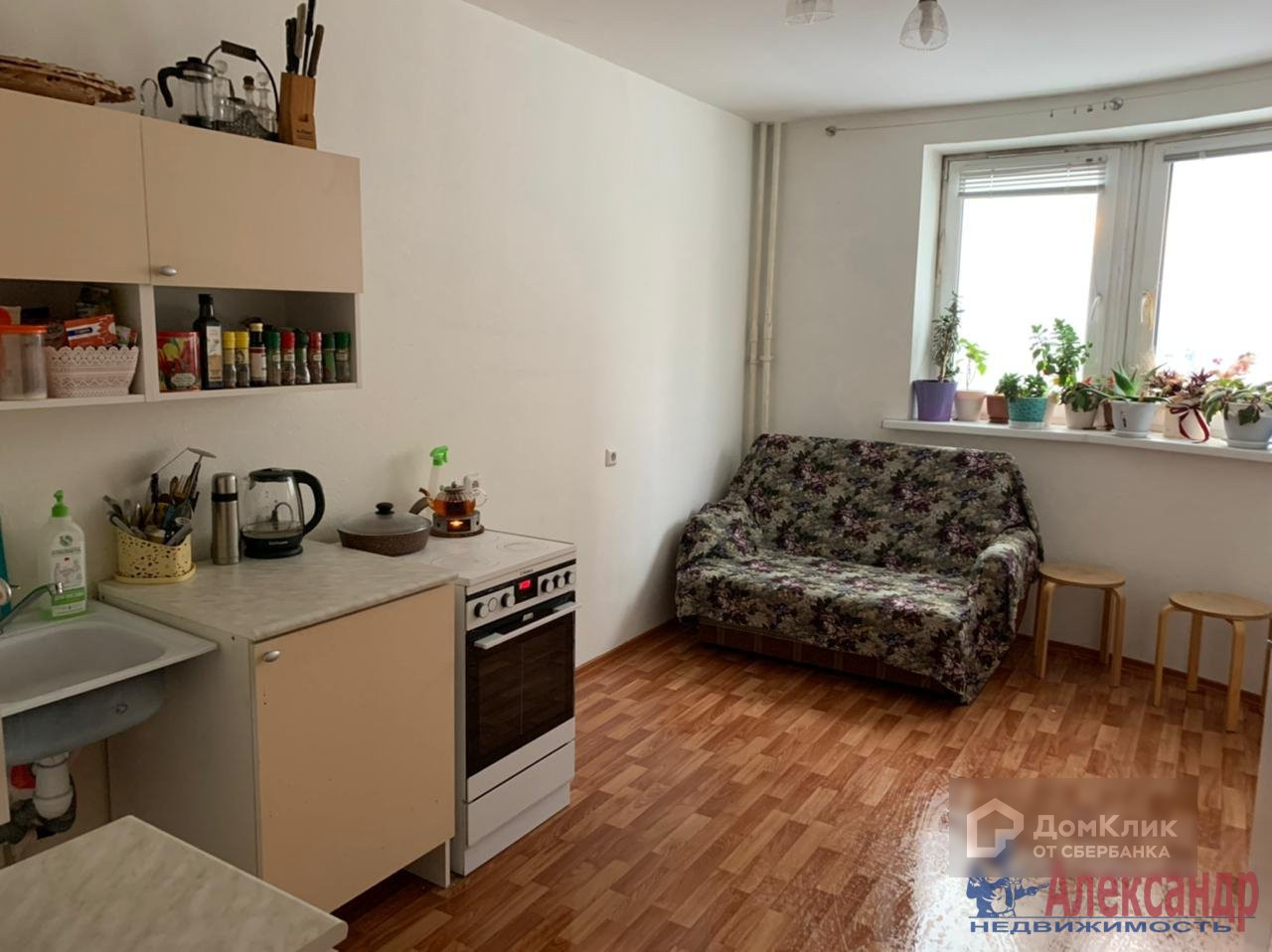 Застеклённая лоджия, совмещённый санузел, просторная кухня-гостиная.