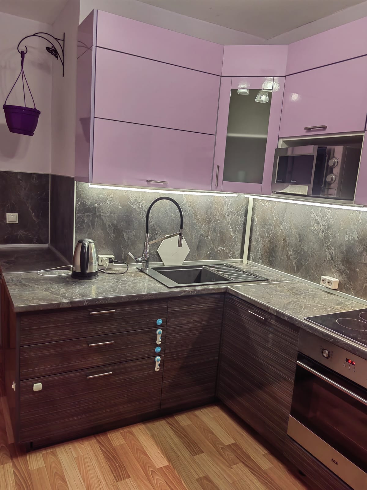 На входе расположена просторная гардеробная. В кухне и в комнате сделан новый ремонт. В спальне большая красивая кровать с двуспальным анатомическим матрасом. В ванной комнате установлена современная сантехника. Кухня меблирована функциональным гарнитуром и хорошей техникой (плита, духовой шкаф, посудомойка, микроволновка, холодильник). Есть дополнительная кладовая для хранения вещей. Балкон оборудован шкафом, в котором также можно хранить, не требующиеся постоянно, нужные вещи.