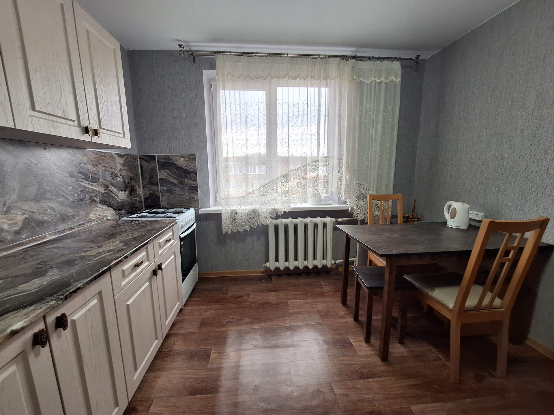Квартира из 4комнат в пос.Парковом. на 5/5 этаже. Выполнен качественный ремонт.МПО.Две кладовки.На кухне остается гарнитур.Санузел раздельный.Рядом все необходимое для комфортного проживания.