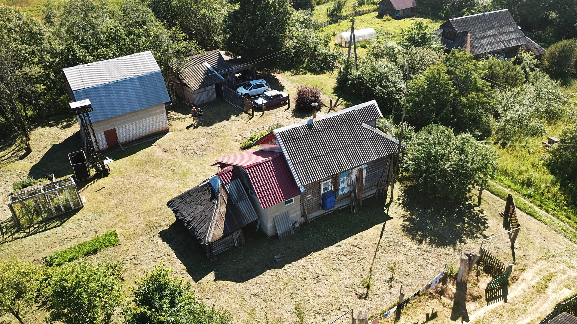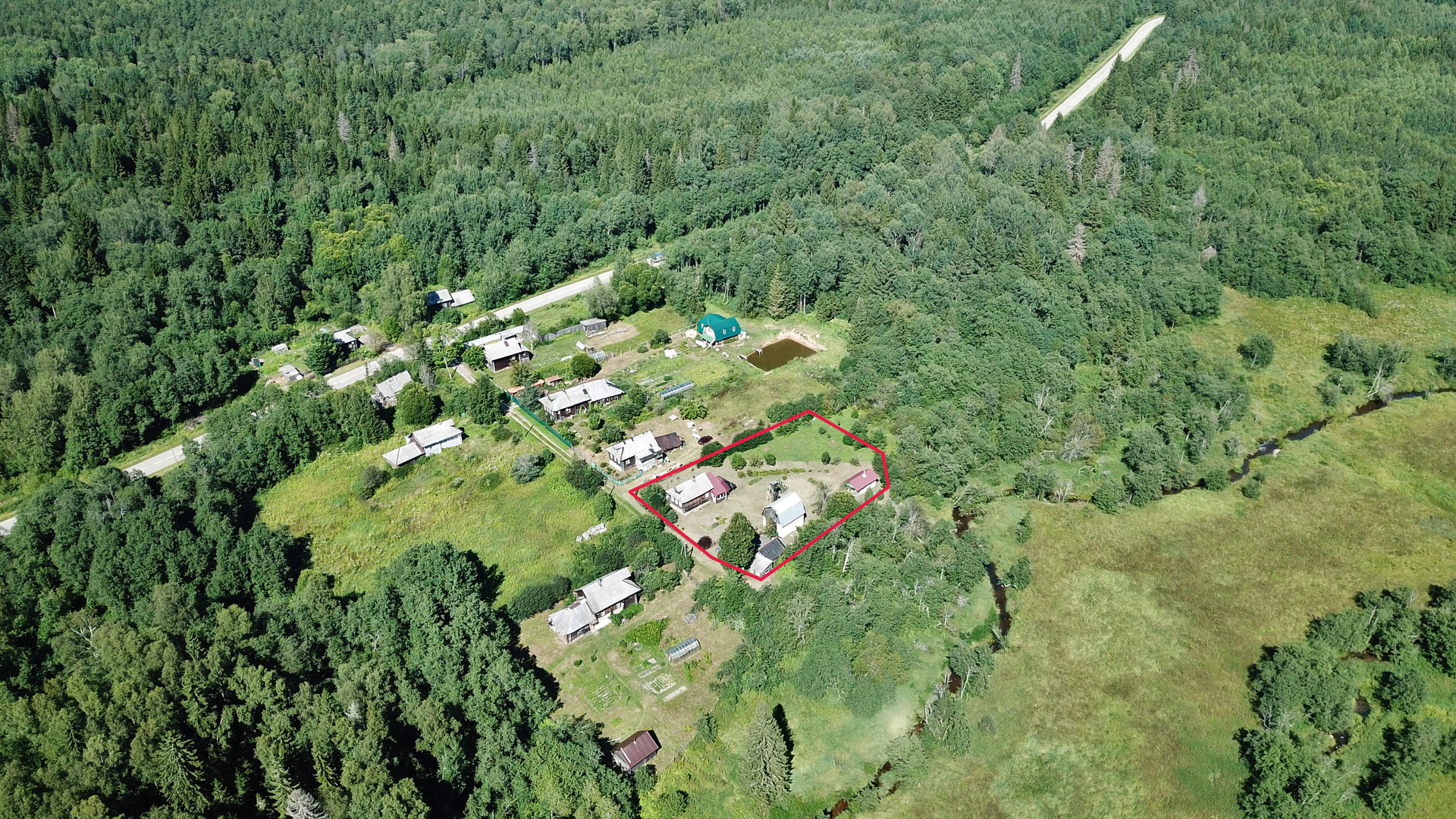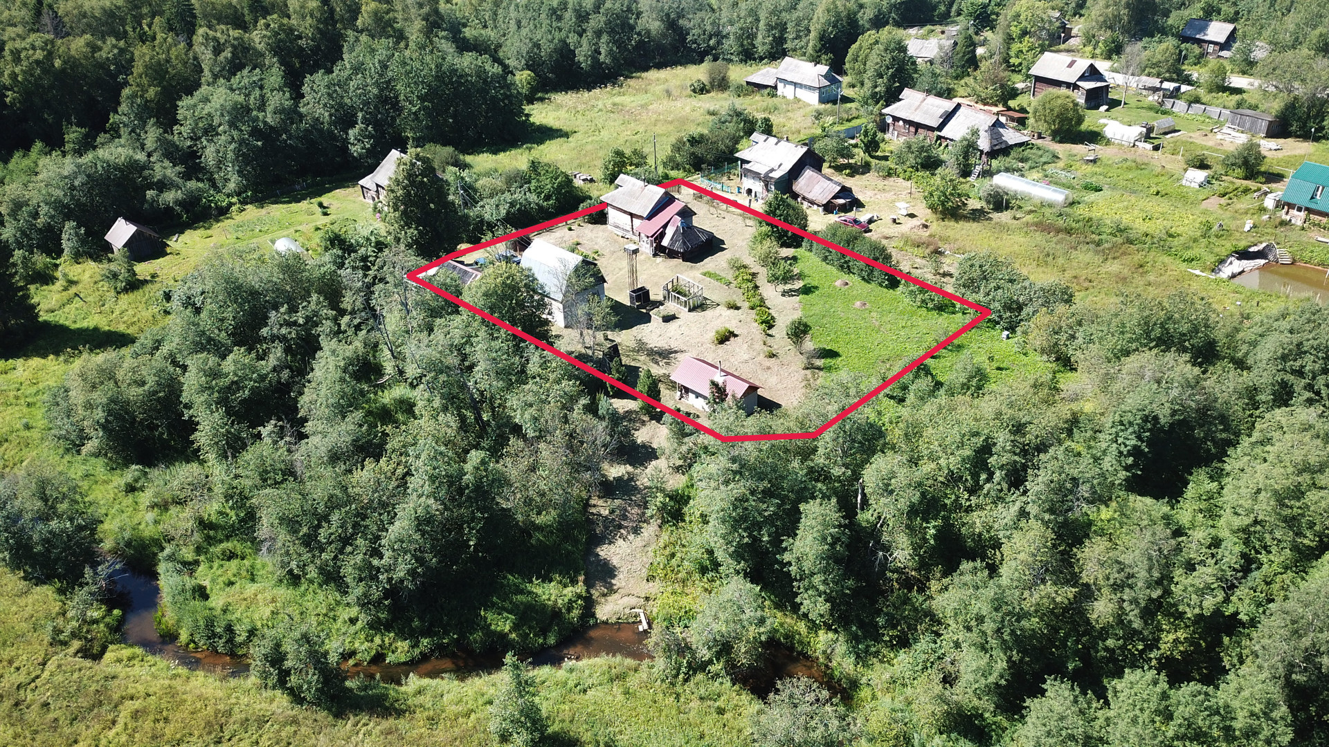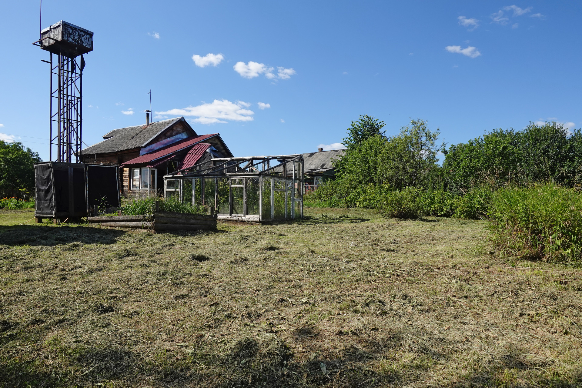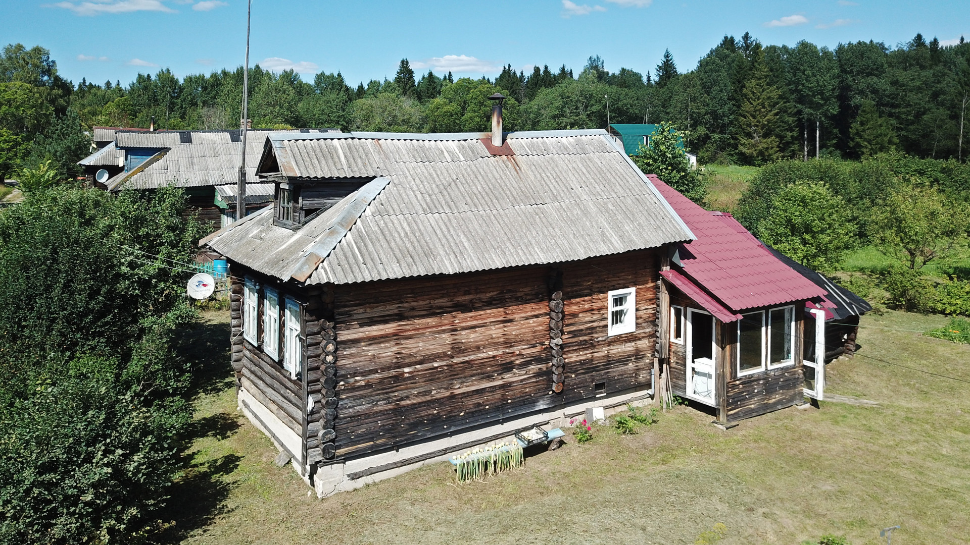 Крепкий бревенчатый дом (традиционная рубленая изба) на ленточном фундаменте, общей площадью 52 кв.м. Печное отопление (кирпичная печь шведка со встроенной духовкой). Электричество (7 кВт), водопровод (ключевая вода подаётся насосом из родника), автономная канализация (переливные кольца), баллонный привозной газ. В доме одна большая комната, кухня, прихожая, санузел (оборудована система «тёплый пол»).