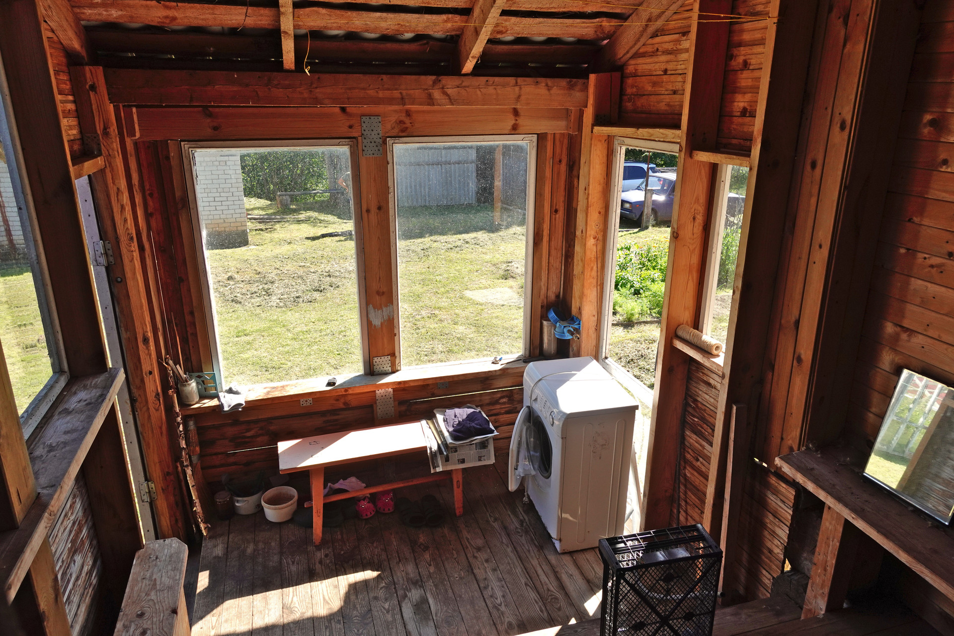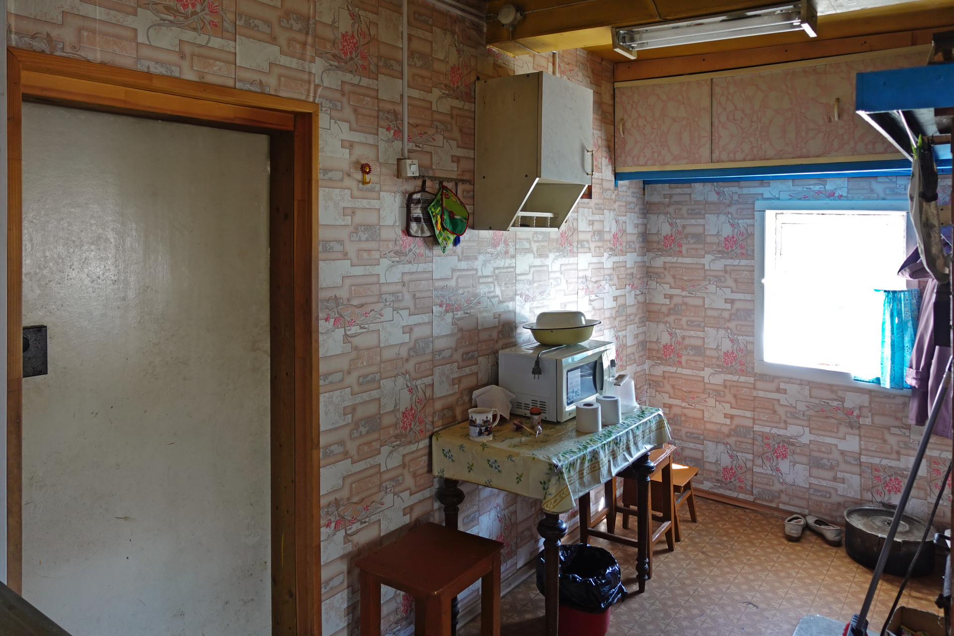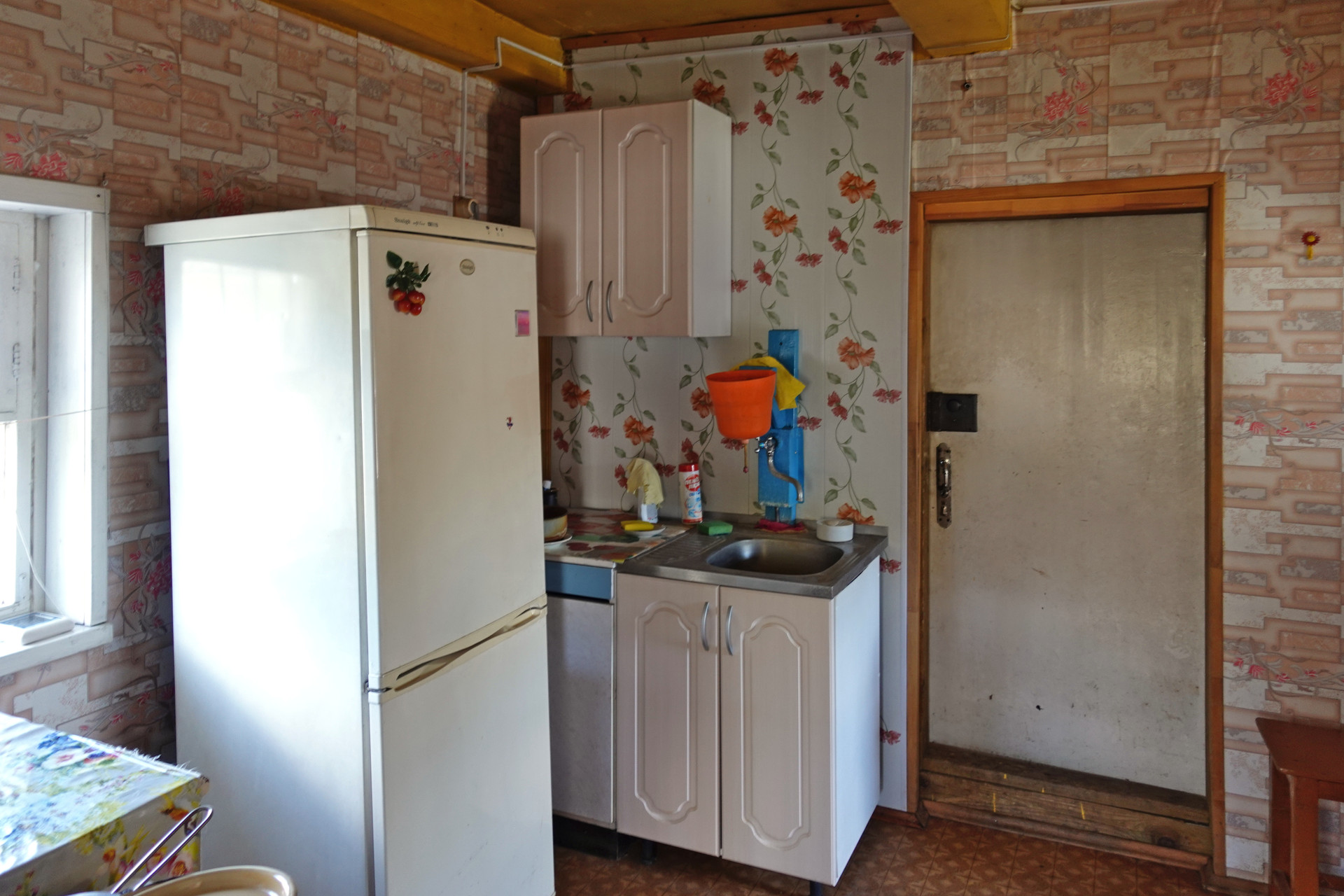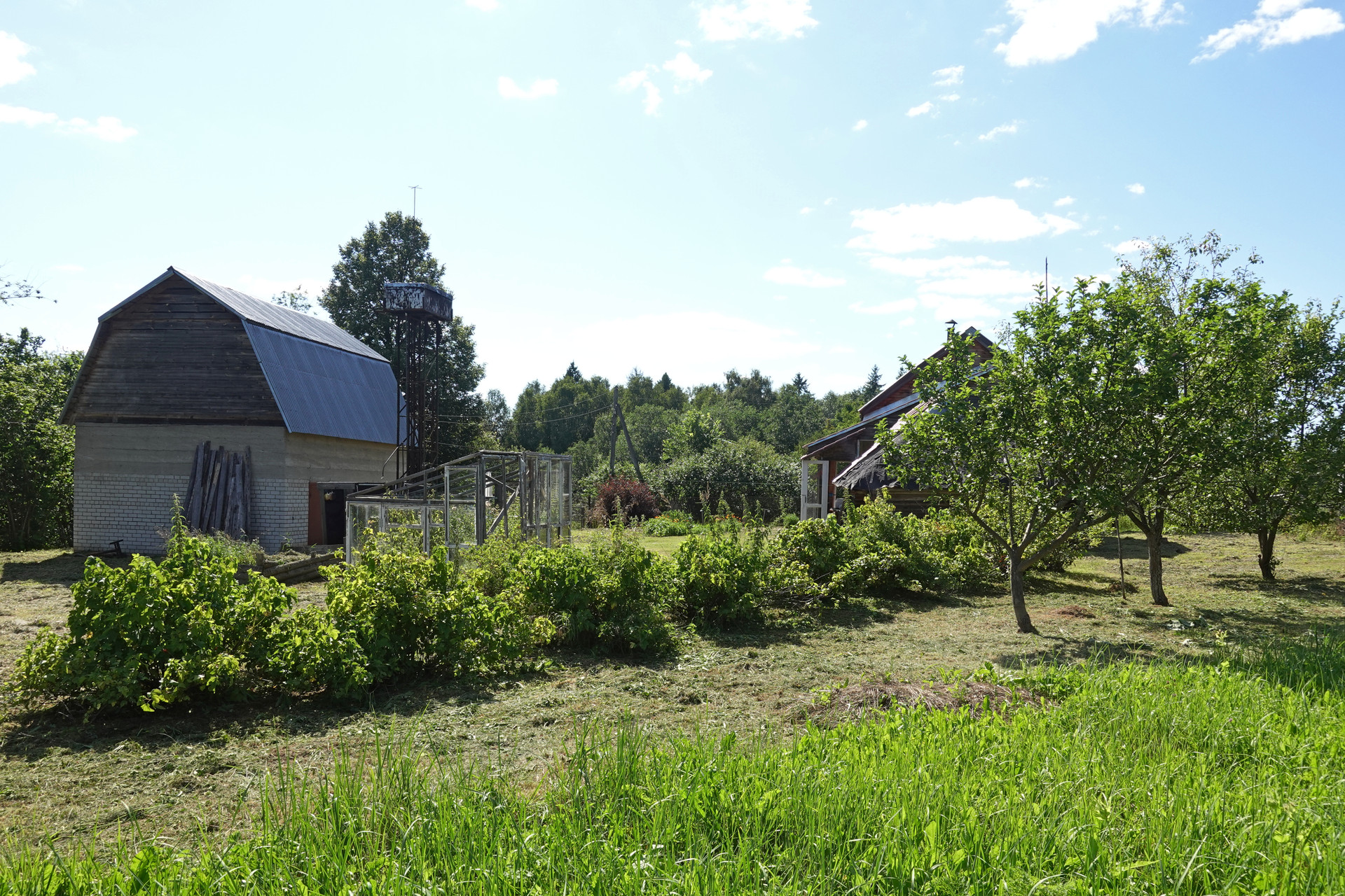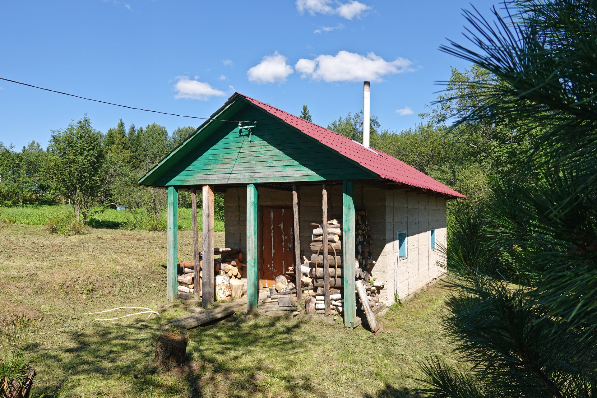 Крепкий бревенчатый дом (традиционная рубленая изба) на ленточном фундаменте, общей площадью 52 кв.м. Печное отопление (кирпичная печь шведка со встроенной духовкой). Электричество (7 кВт), водопровод (ключевая вода подаётся насосом из родника), автономная канализация (переливные кольца), баллонный привозной газ. В доме одна большая комната, кухня, прихожая, санузел (оборудована система «тёплый пол»).