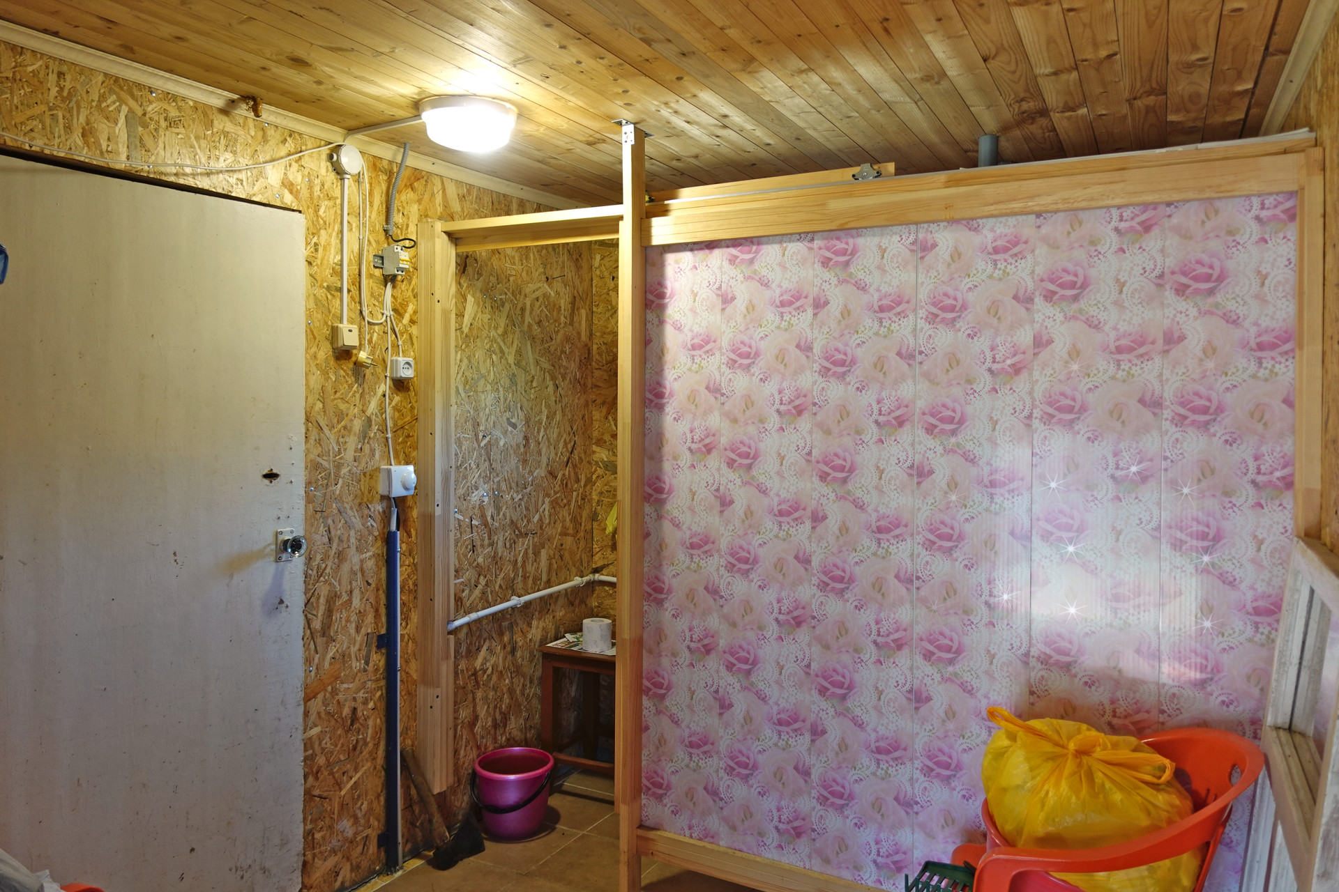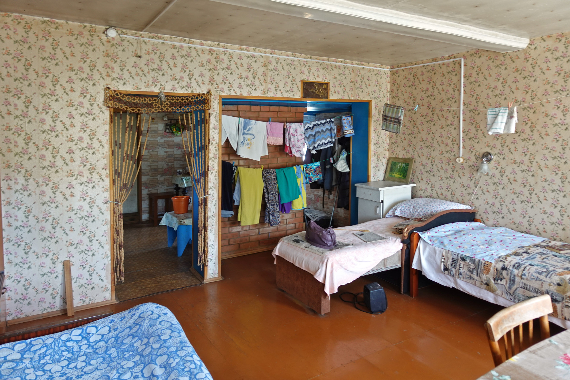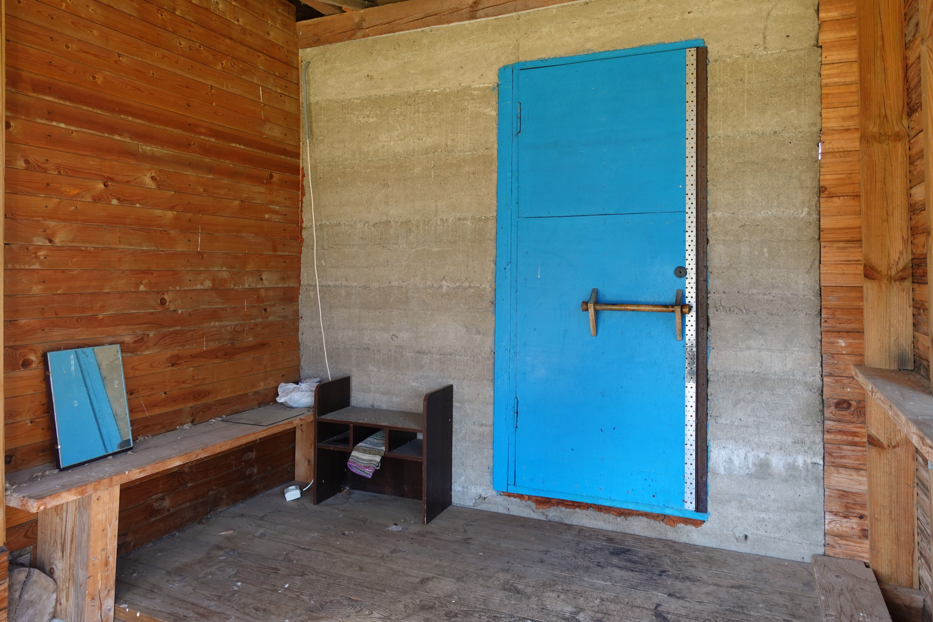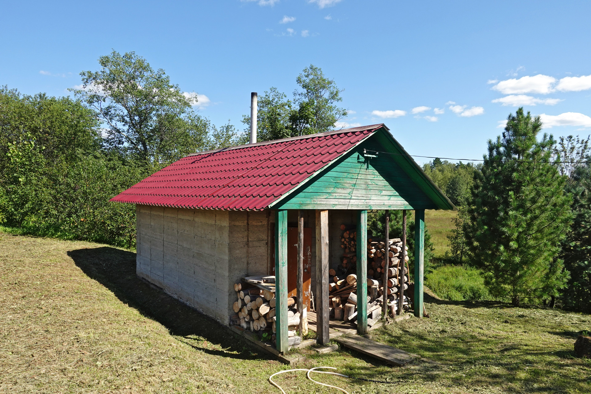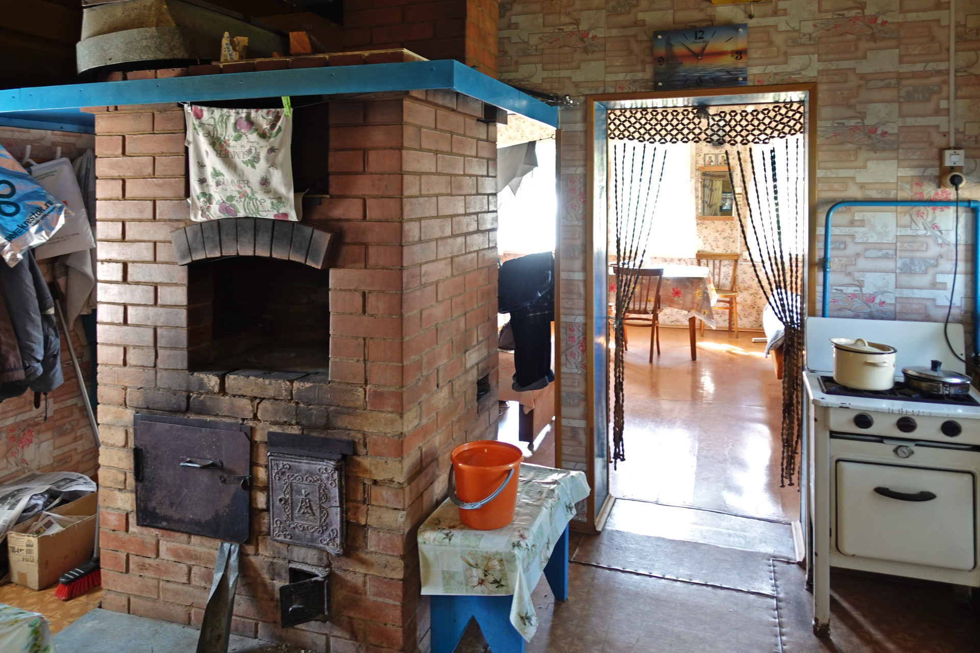 Крепкий бревенчатый дом (традиционная рубленая изба) на ленточном фундаменте, общей площадью 52 кв.м. Печное отопление (кирпичная печь шведка со встроенной духовкой). Электричество (7 кВт), водопровод (ключевая вода подаётся насосом из родника), автономная канализация (переливные кольца), баллонный привозной газ. В доме одна большая комната, кухня, прихожая, санузел (оборудована система «тёплый пол»).