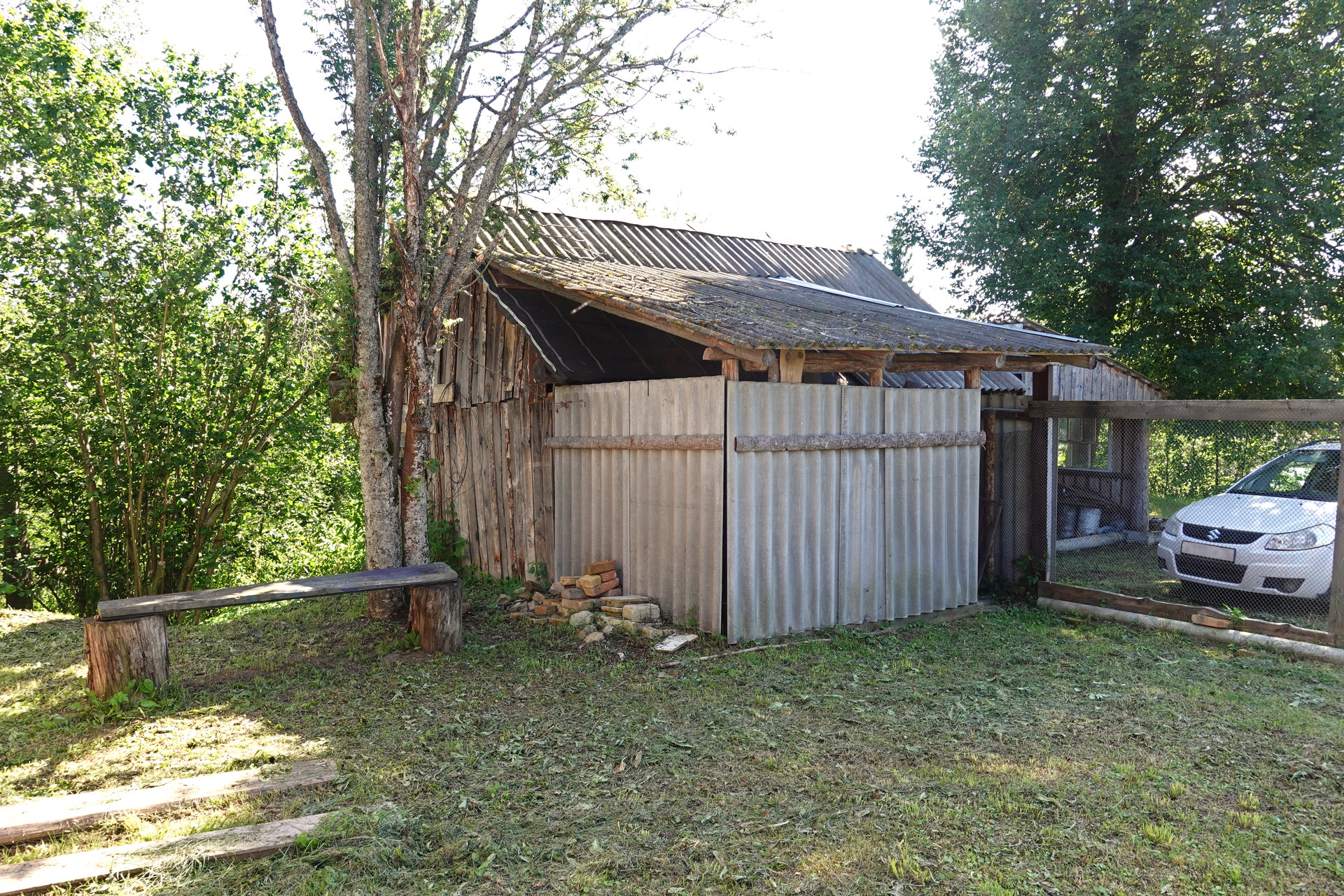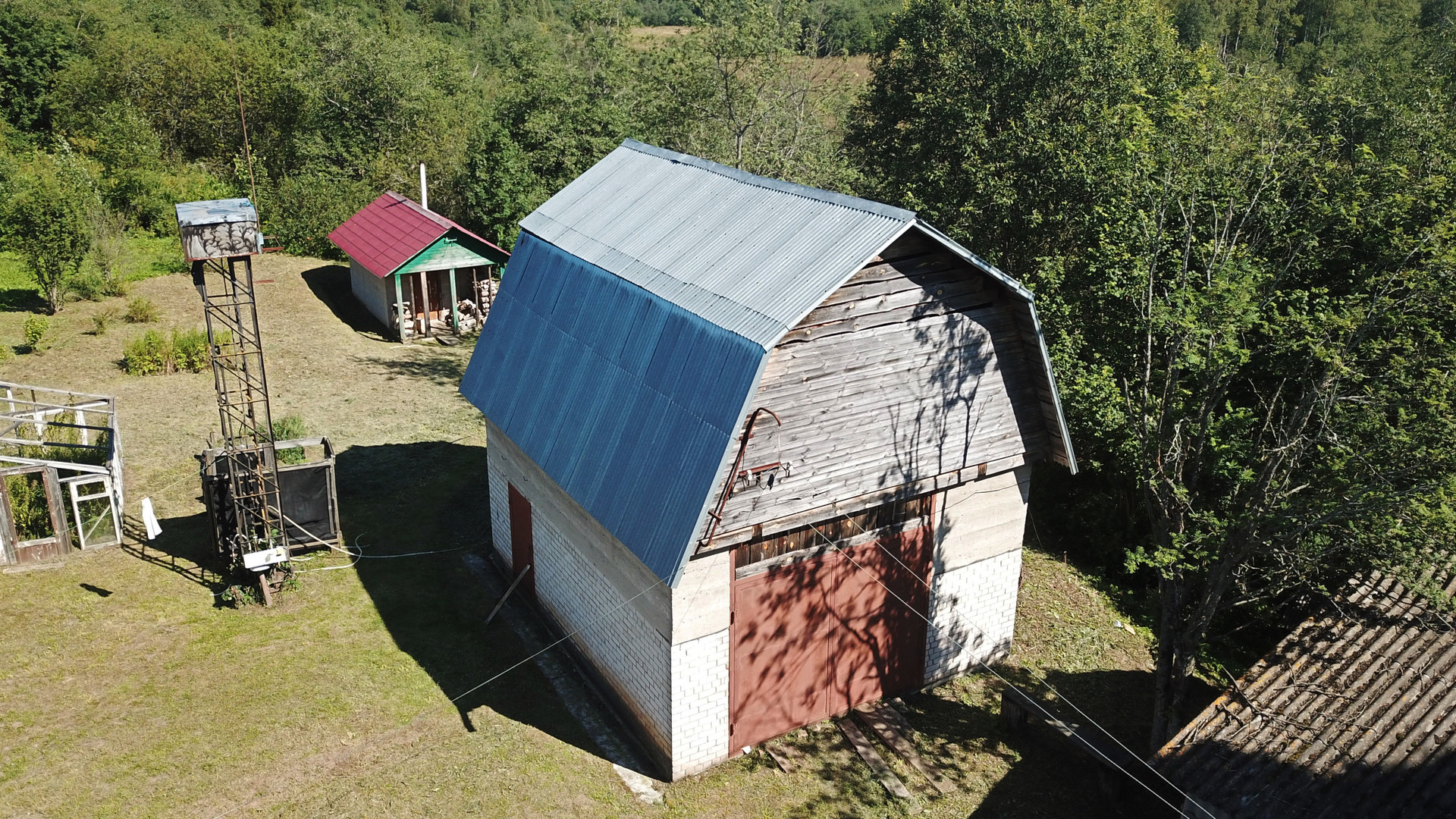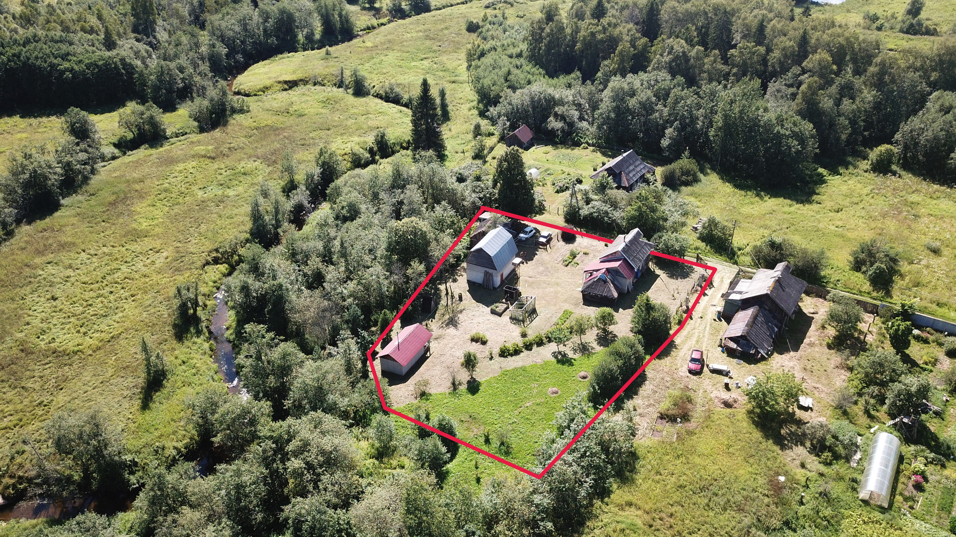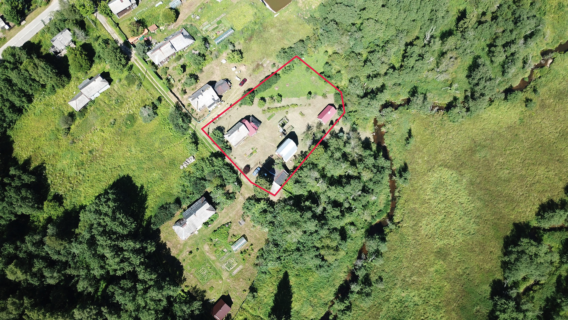 Участок общей площадью 1914 кв.м (19 соток), по фасаду огорожен забором, есть плодовые насаждения: груши, яблони, смородина, крыжовник. По границе участка протекает река Улейма, оборудован небольшой помост для купания и рыбной ловли. Вдоль берега посажены молодые кедры. Из построек на участке расположена баня, дровяник, двухэтажный гараж с кирпичным погребом. Асфальтовый подъезд до самой деревни, 100 метров до дома – грунтовая дорога (зимой расчищают).