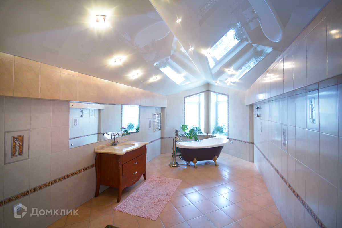 3-й этаж: просторная ванная комната, ванна расположена в метре от эркерного окна.
