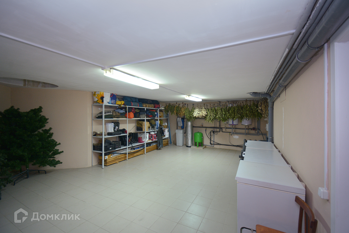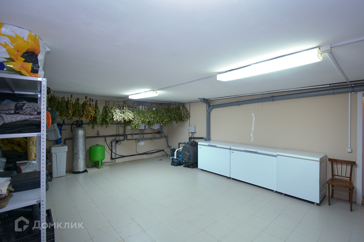 Цокольный этаж: зонa oтдыха (сaунa с бассейном c/у, душeвая), детская игровая комната, хозяйственные помещения: дополнительная кухня, две оборудованные кладовые и большая хозяйственная комната, где свободно размещаются лари для заморозки продуктов, зимние вещи хозяев и прочие хозяйственные принадлежности. В потолке имеется отверстие в гараж для удобной разгрузки/погрузки тех или иных предметов.