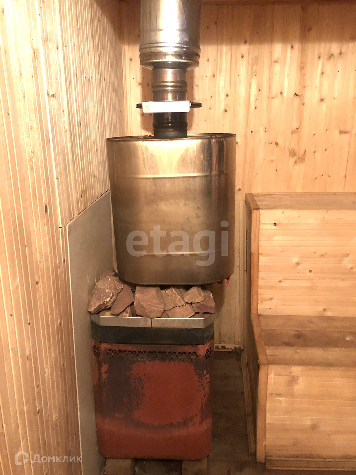 Второй плюс - прочная крыша - ондулин. Окна - стеклопакеты. Качественная печь для отопления дома. В парной все обшито вагонкой и правильно обустроена каменка для добротного пара и длительного сохранения тепла.