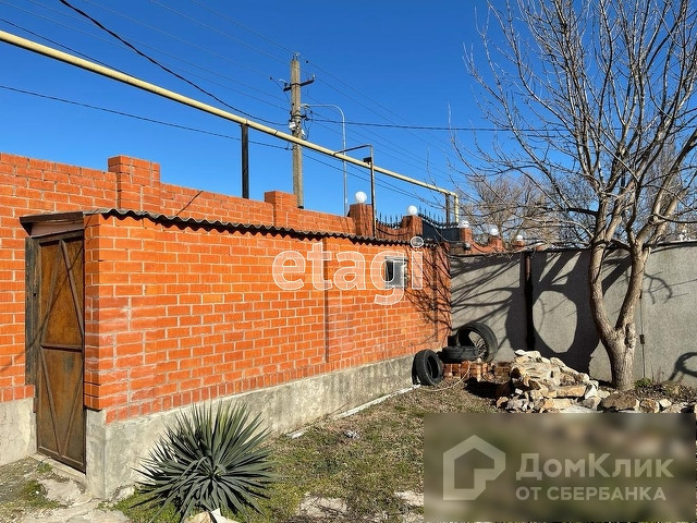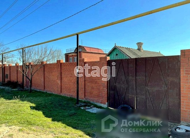 Дом саманный из трех комнаты, кухни и санузел. Две комнаты изолированные, одна проходная. В доме есть электричество, центральный водопровод, канализация. Газопровод проходит по границе домовладения.