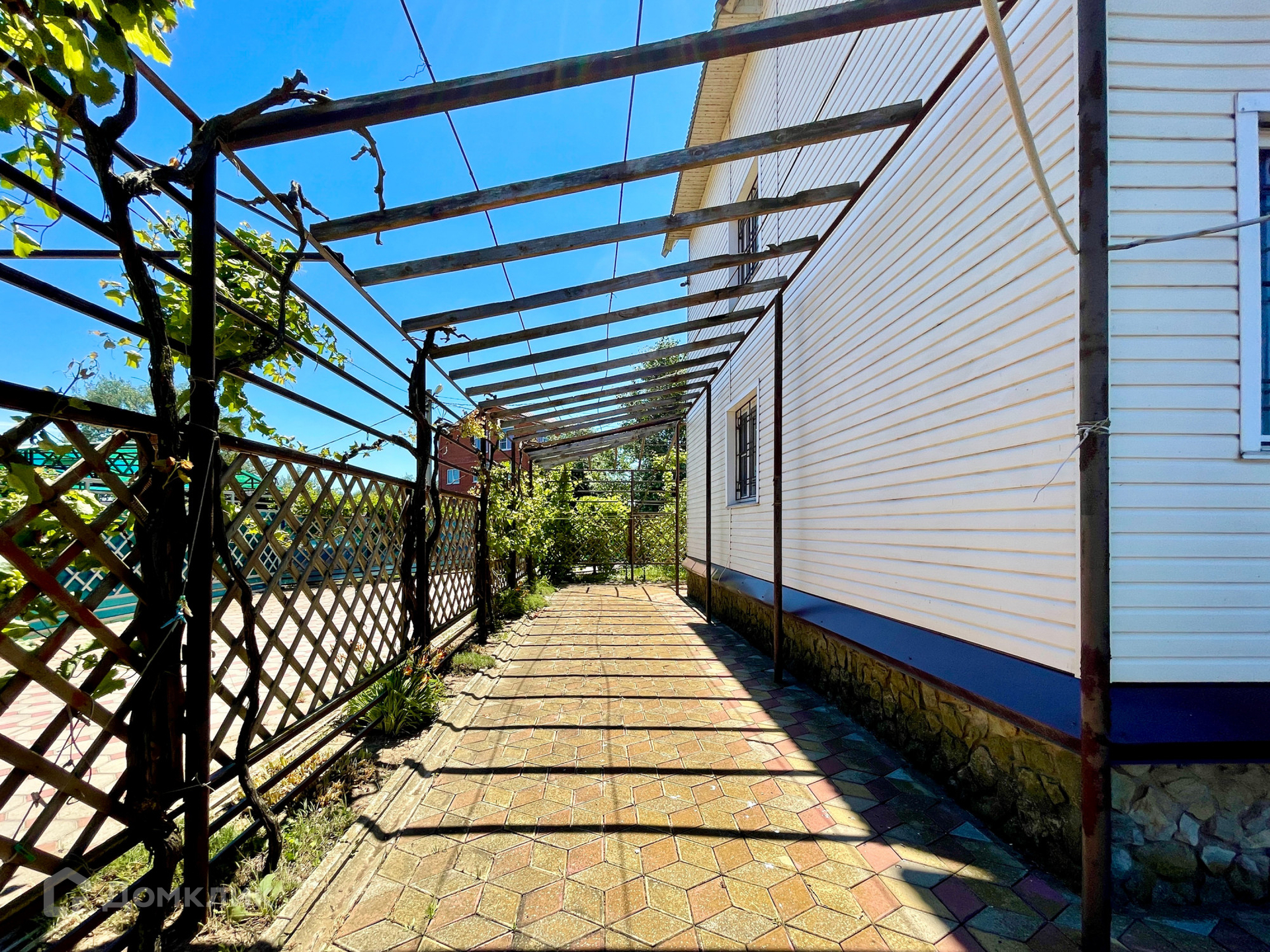 На участке 6 соток выполнено мощение дорожек, сделано ландшафтное озеленение, построен бассейн. К дому пристроен навес, который используется для летнего настольного тенниса. На участке есть также хоз блок. Отдельно есть крытый гараж на 1 а/м.