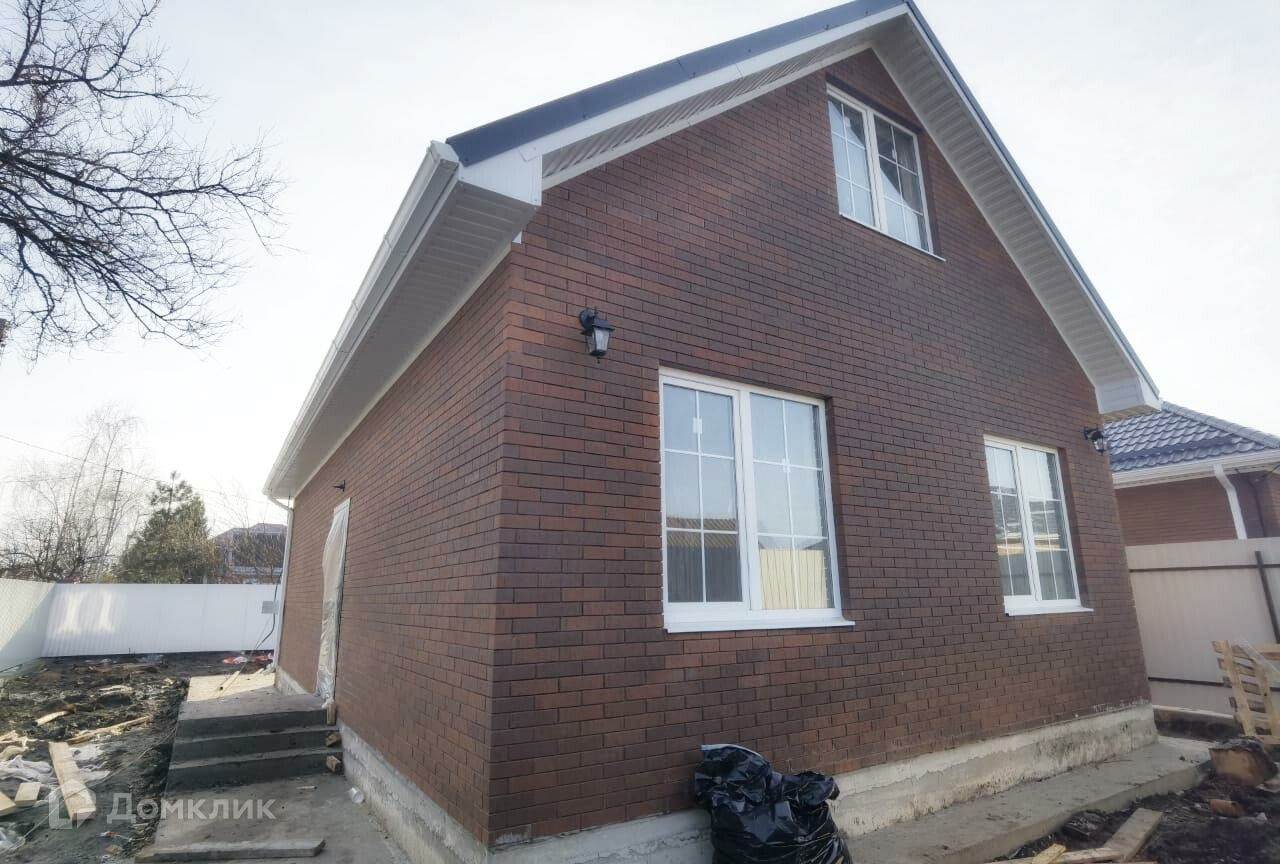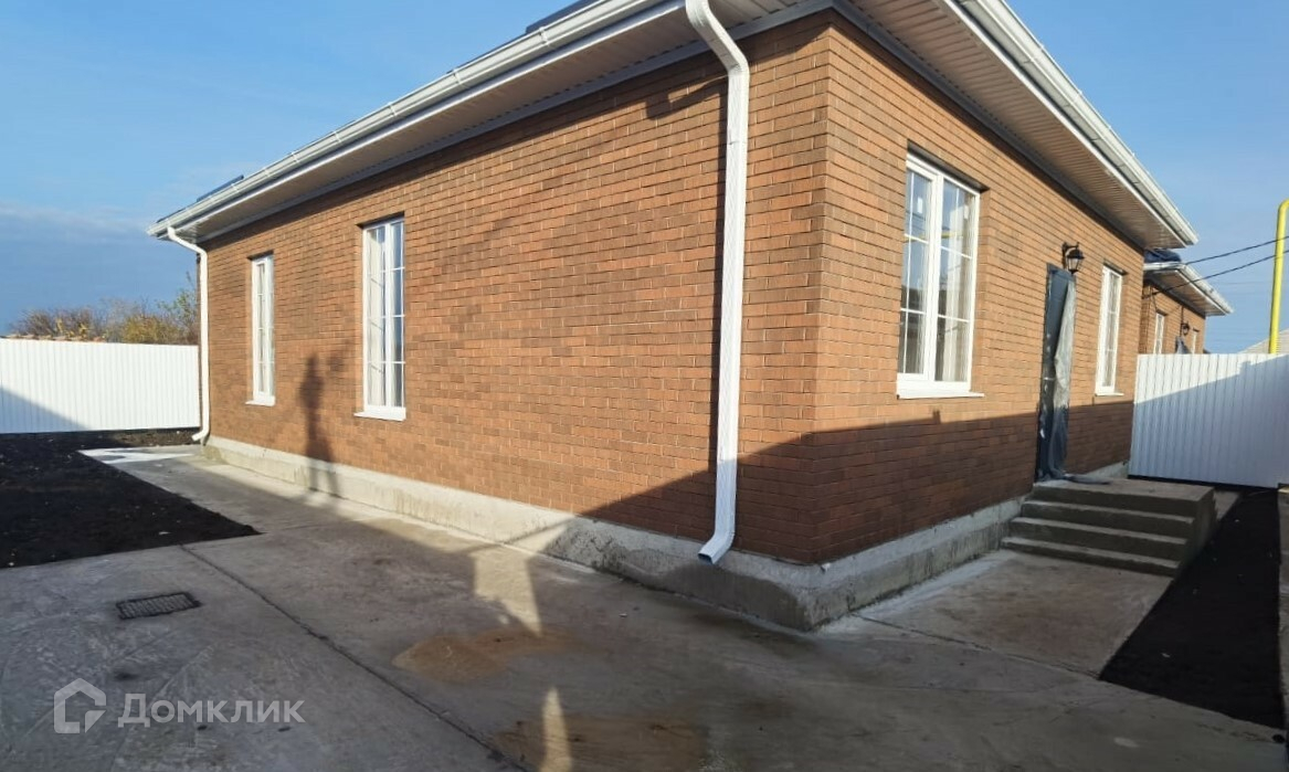 Дом построен в 2023 году по типовому проекту. Размеры 9 на 11 метров. Ленточный фундамент плюс плита, стены: газовый блок плюс кирпич под черепичной крышей. Внутри электропроводка, штукатурка, отопление, стяжка, натяжной потолок.