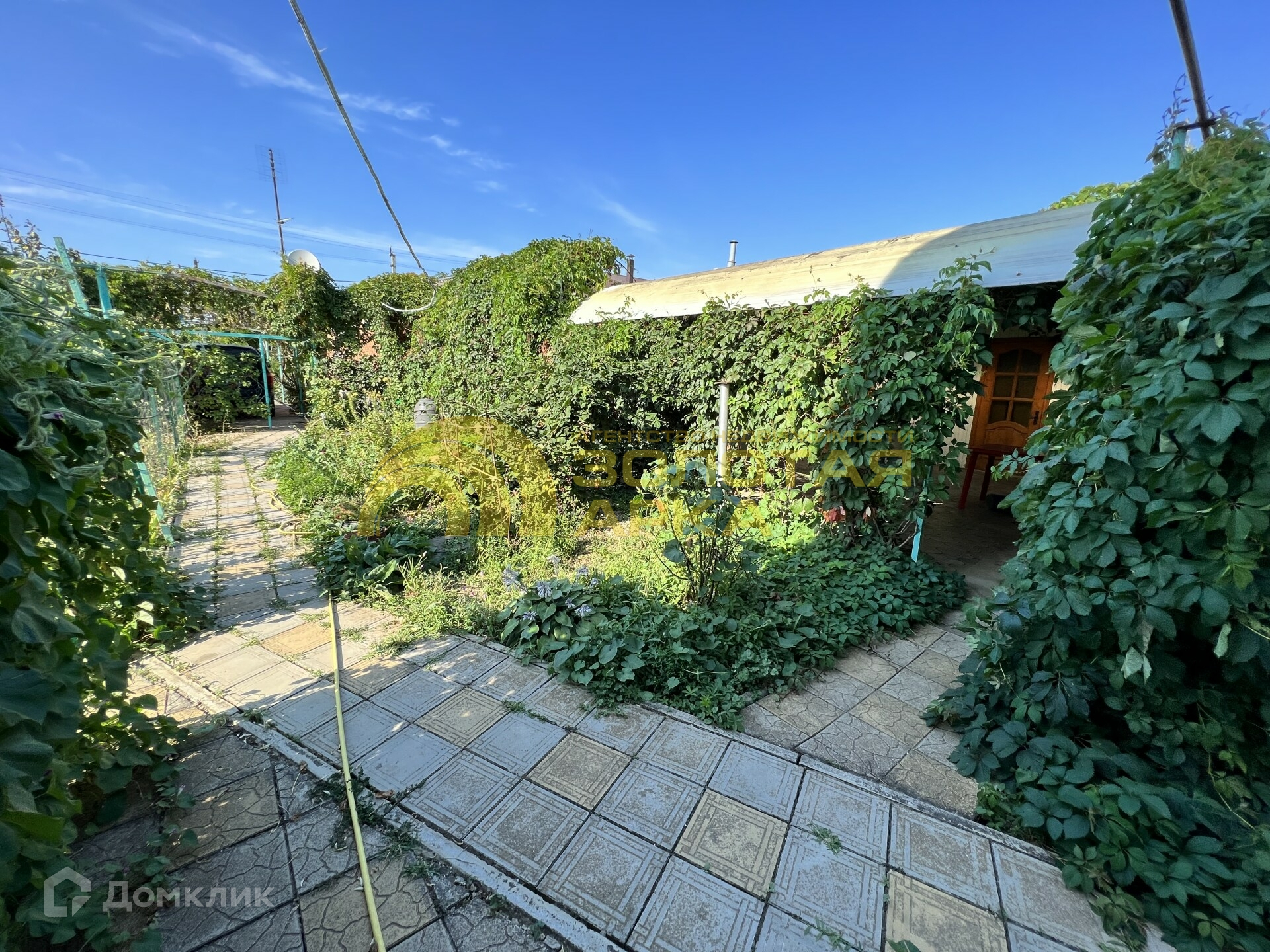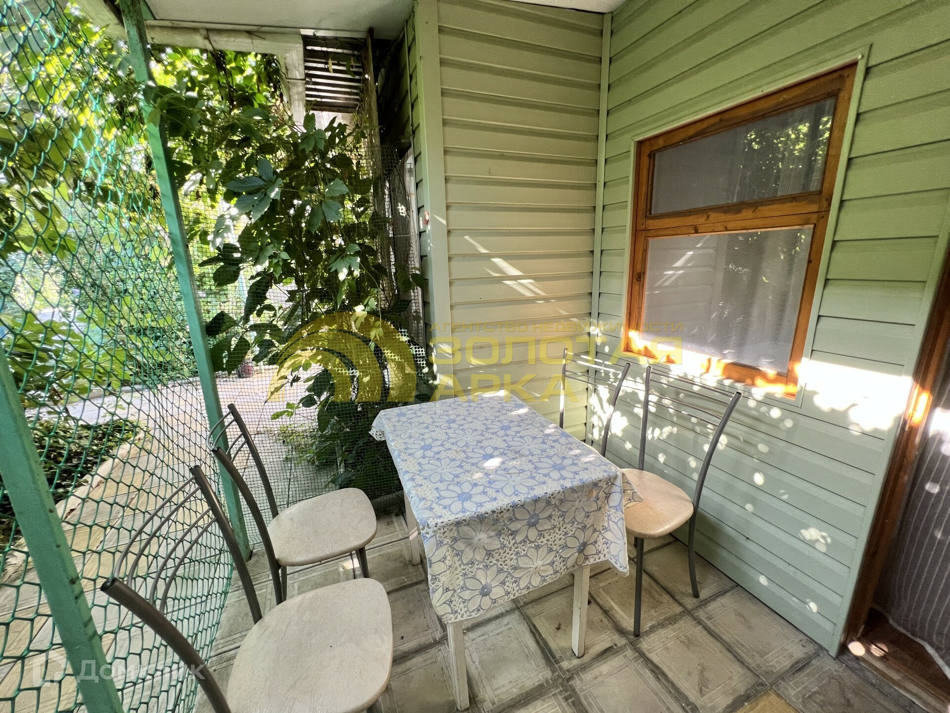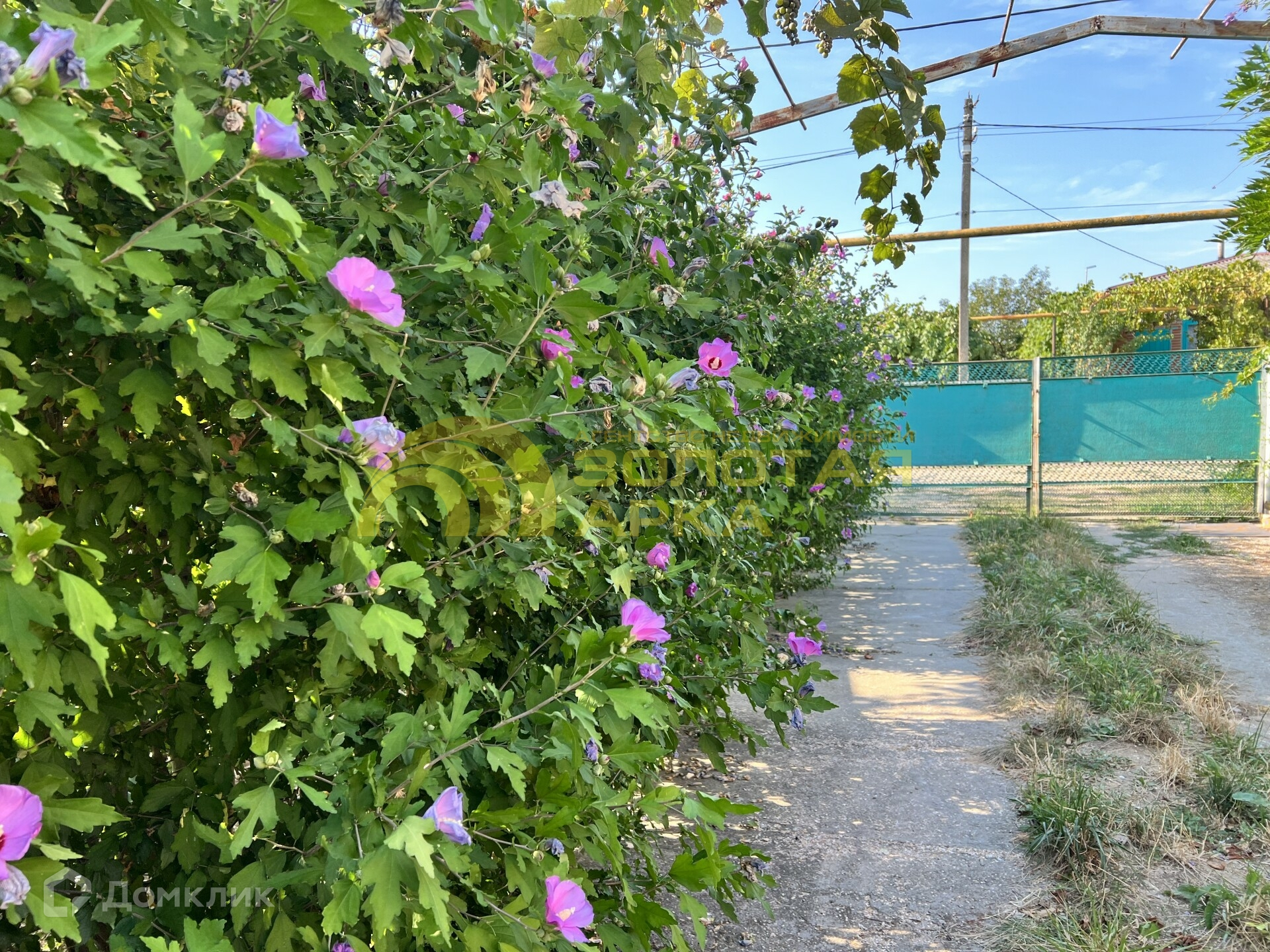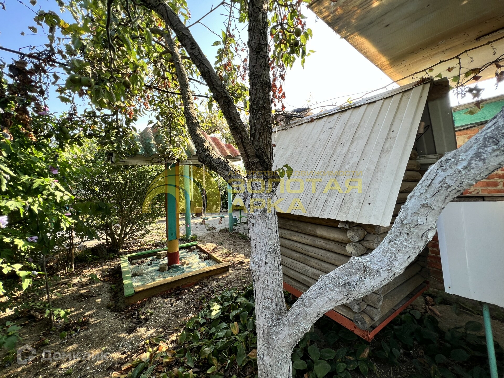 Закрытая территория с зоной для отдыха:мангал, детская площадка, беседка. Везде высажены декоративные кустарники, цветы.