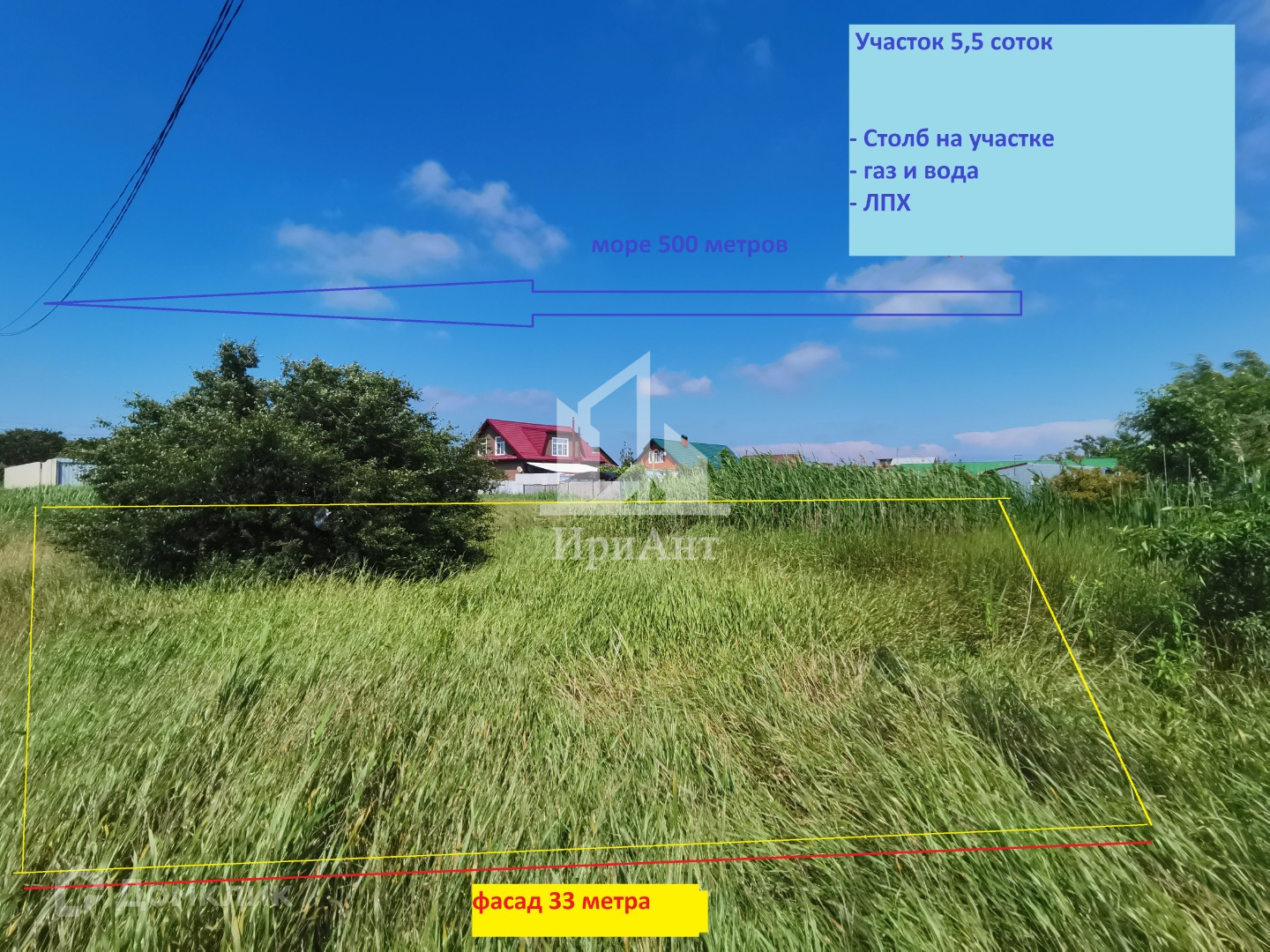 Продаётся участок 5,4 соток в 500 метрах от Азовского моря в п. Пересыпь. Участок ровной прямоугольной формы. Фасад 33 метра, глубина 16 метров. На участке стоит столб электроэнергии. Газ проходит по меже, как и центральное водоснабжение. Назначение земли - ЛПХ. Рядом с участком (в 50 метрах) школа. До остановки общественного транспорта и магазинов - 100 метров. Отлично подойдет как для дачи или постоянного проживания, так и в качестве коммерческого объекта (гостиничный бизнес, маркет и др.). Возможен онлайн показ. С нами преференции от ведущих банков. Звоните!