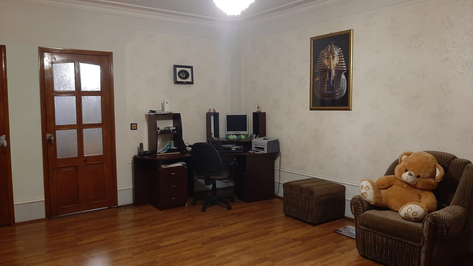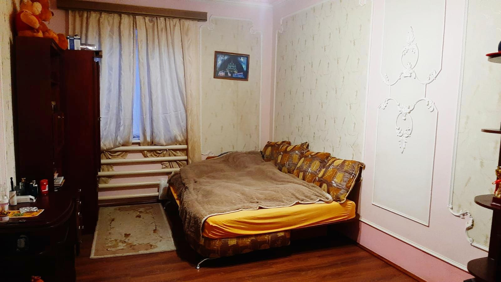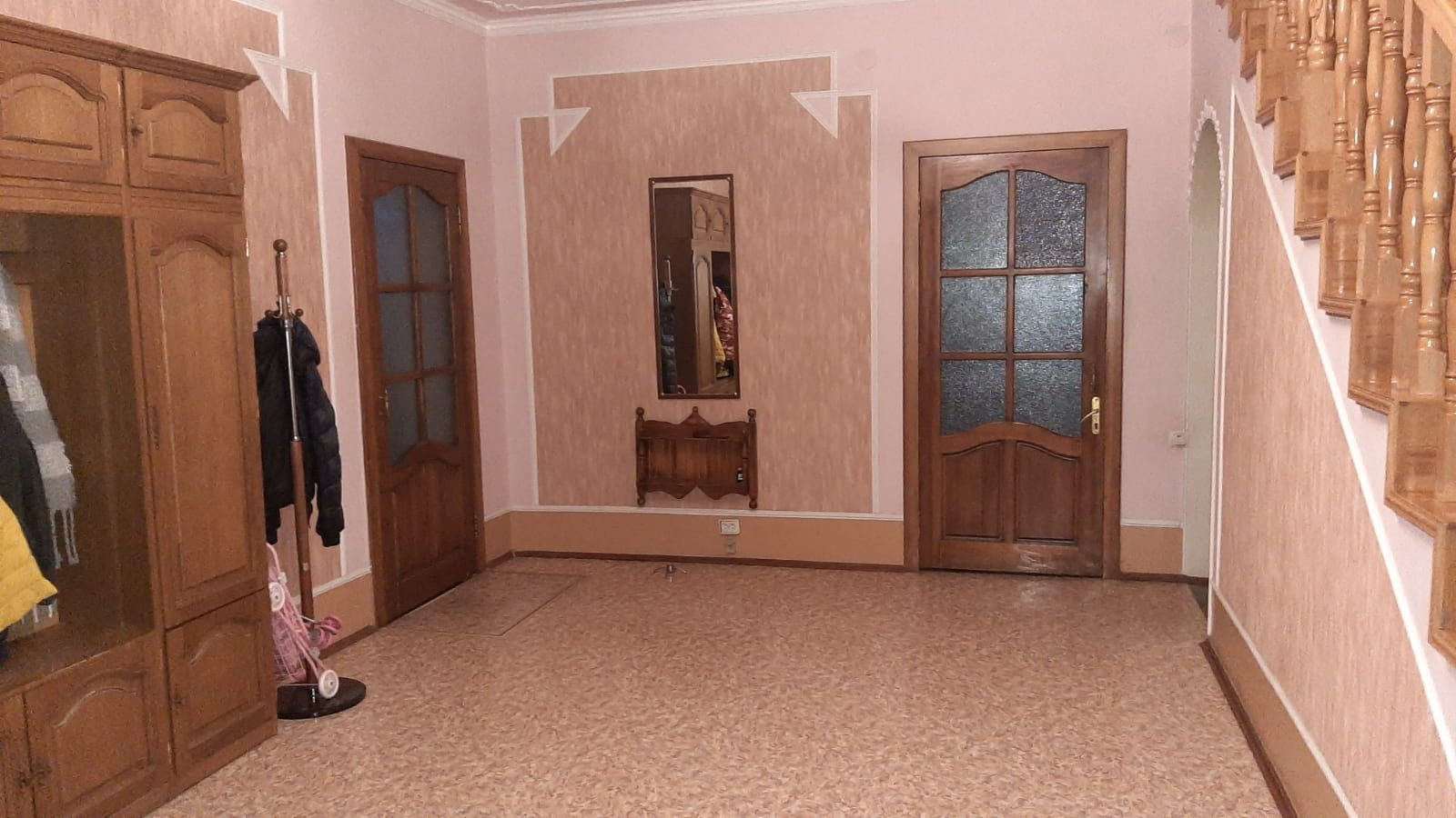 На 1 этаже находятся:просторный холл,кухня-столовая,3 большие спальни, сан узел и гладильная.