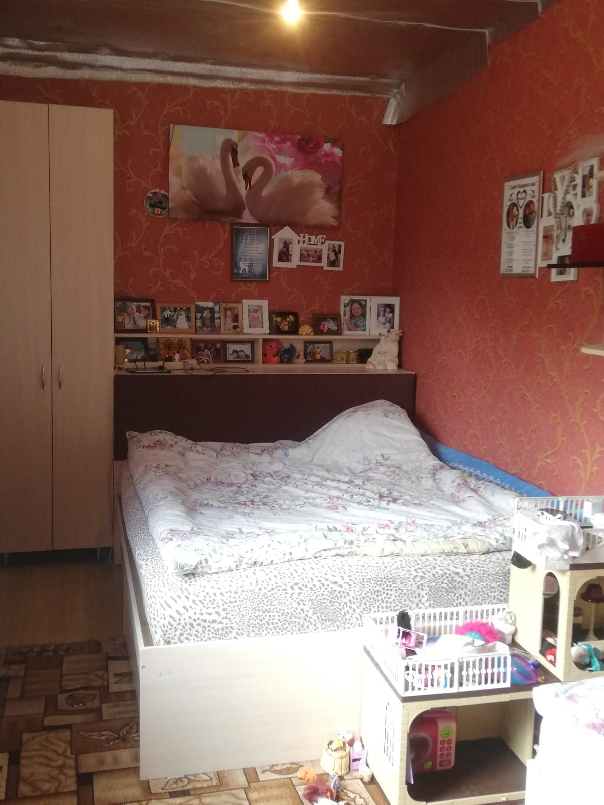 утеплен пенофлекс, потолок урса, полы везде плитка, в спальне ламинат. Электропроводка медная, отопление электро.