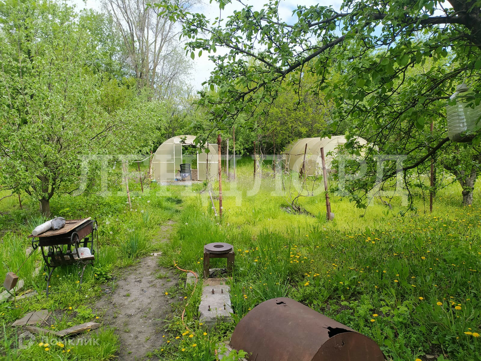 На участке также  есть гараж, хозяйственные постройки, три теплицы, фруктовый сад.