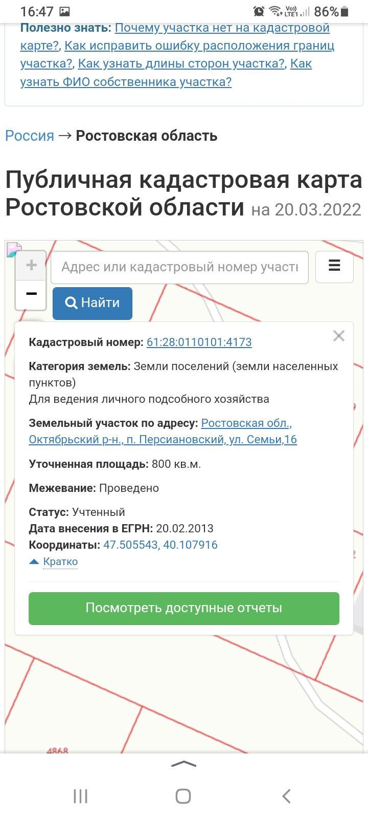Участок под ИЖС, 8 сот. на продажу в поселке Персиановском, улица Мичурина