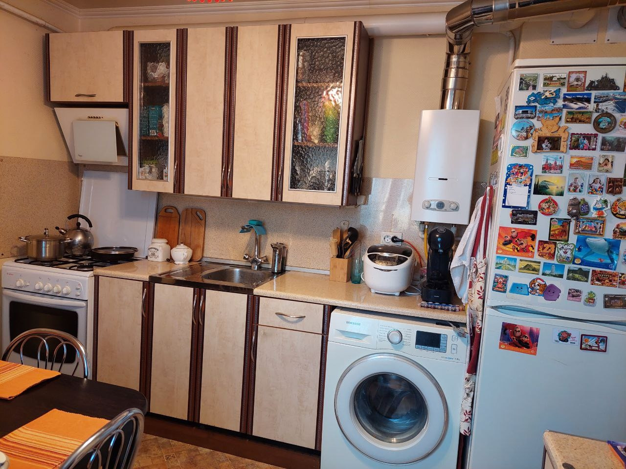 Дом кирпичный (двухквартирный с отдельным входом). Выполнен капитальный ремонт в 2015 г. Канализация местная (3 септика объёмом 15 куб.м.). Дом продаётся с мебелью, частично техникой. Двор очищен, выровнен. Забор по периметру частичный (материал закуплен, требуется доустановка). На участке гараж, вольер для собаки. Соседи тихие, доброжелательные. Водоснабжение центральное, вода отличная.