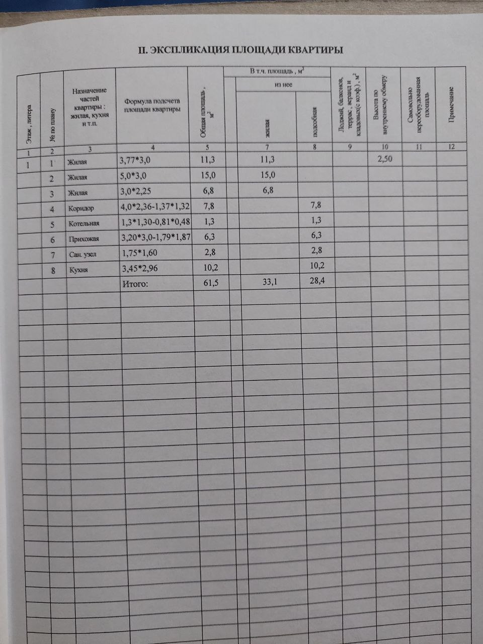 Общая площадь 61.5 м2