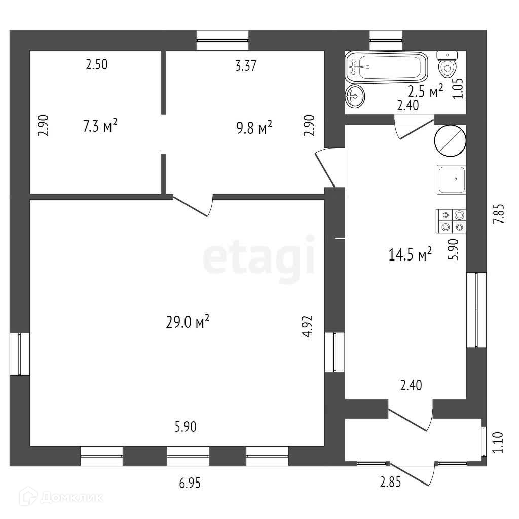 Общая площадь 62.8 м2