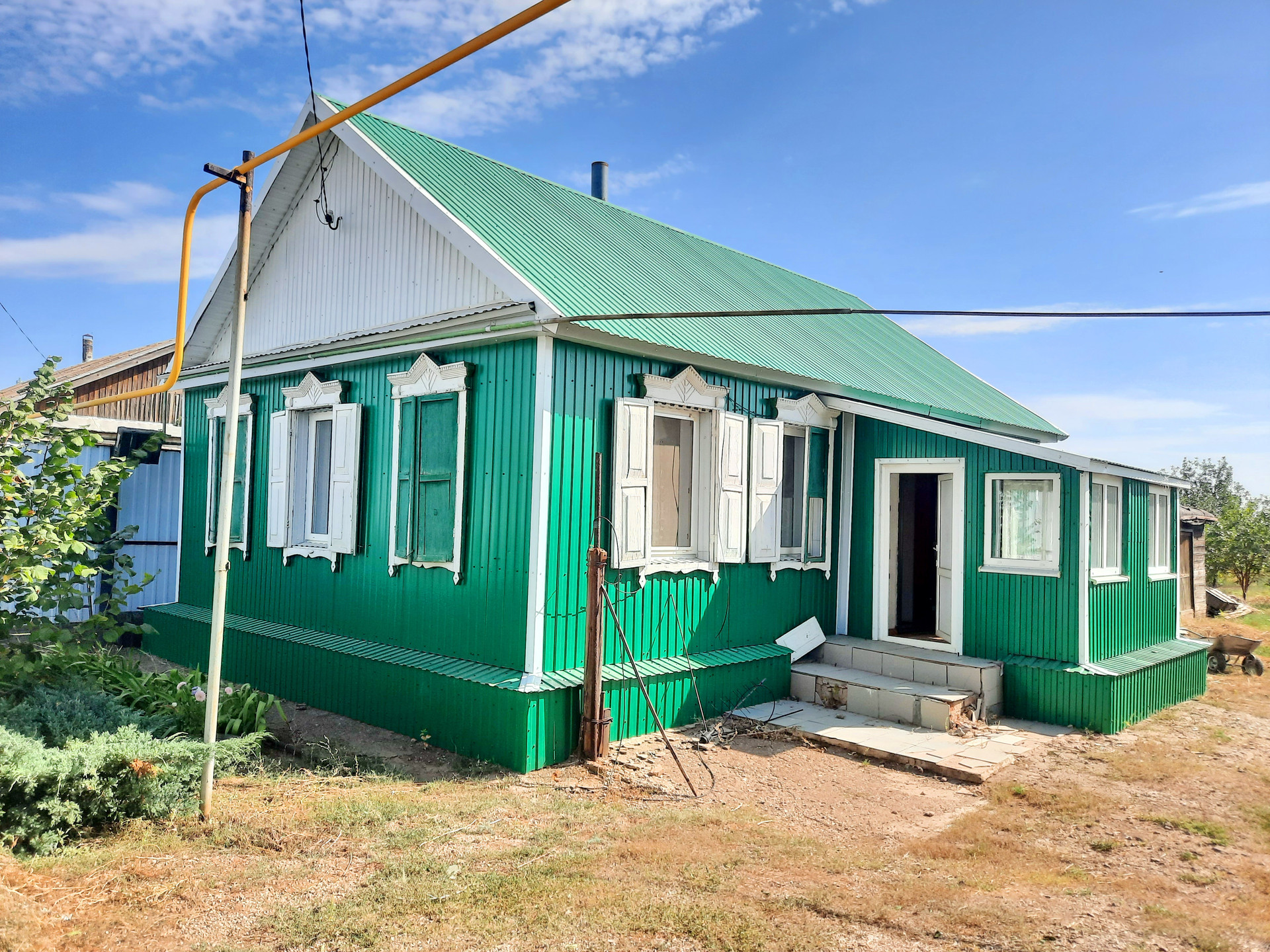 Площадь дома 45,7 кв.м. газ, 3 жилые комнаты, кухня, электричество в доме. Вода центральная, заведена в баню.