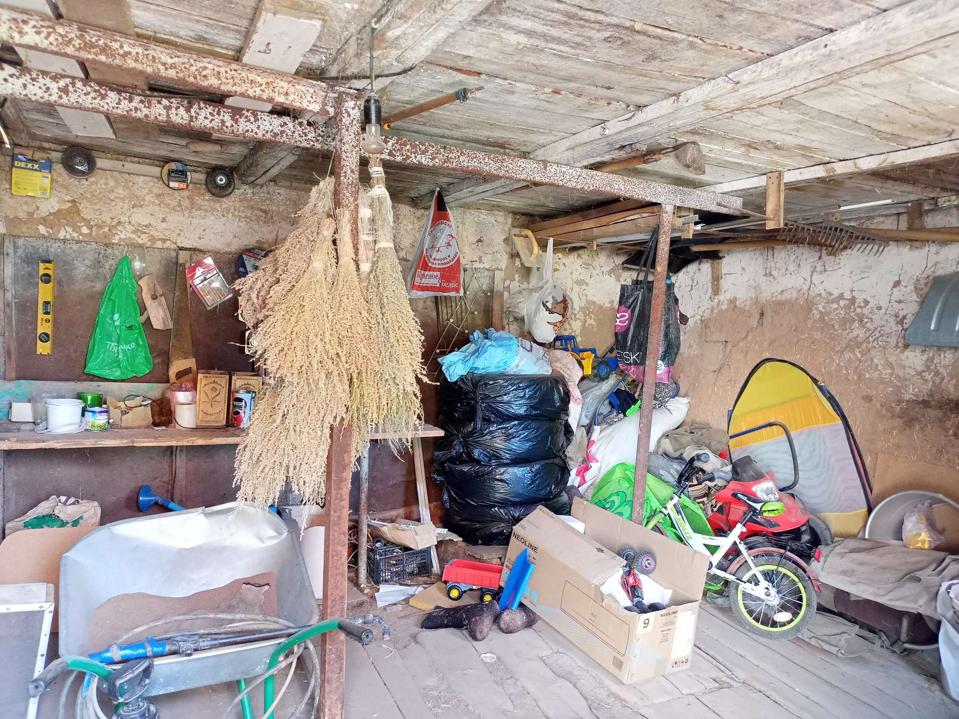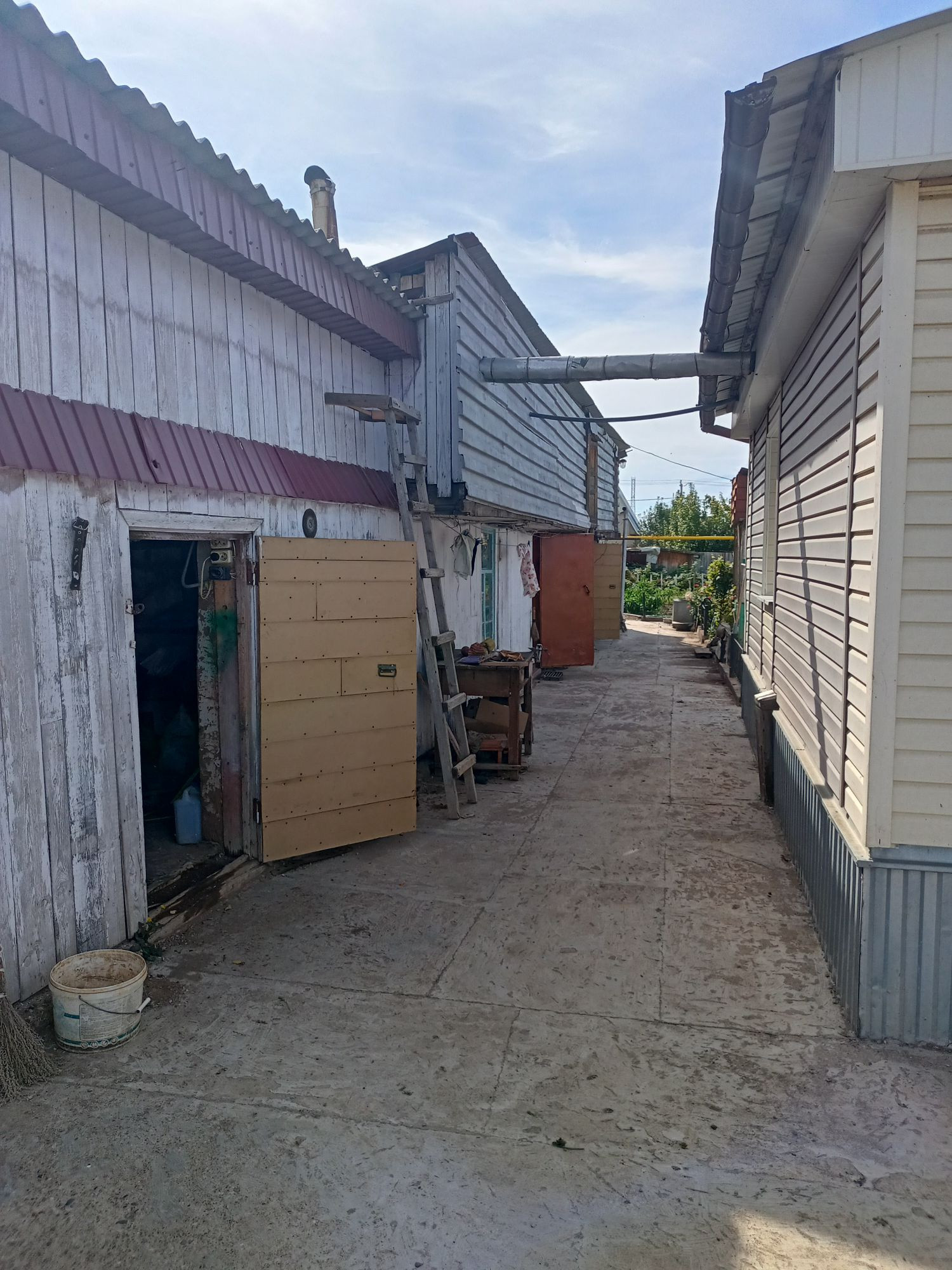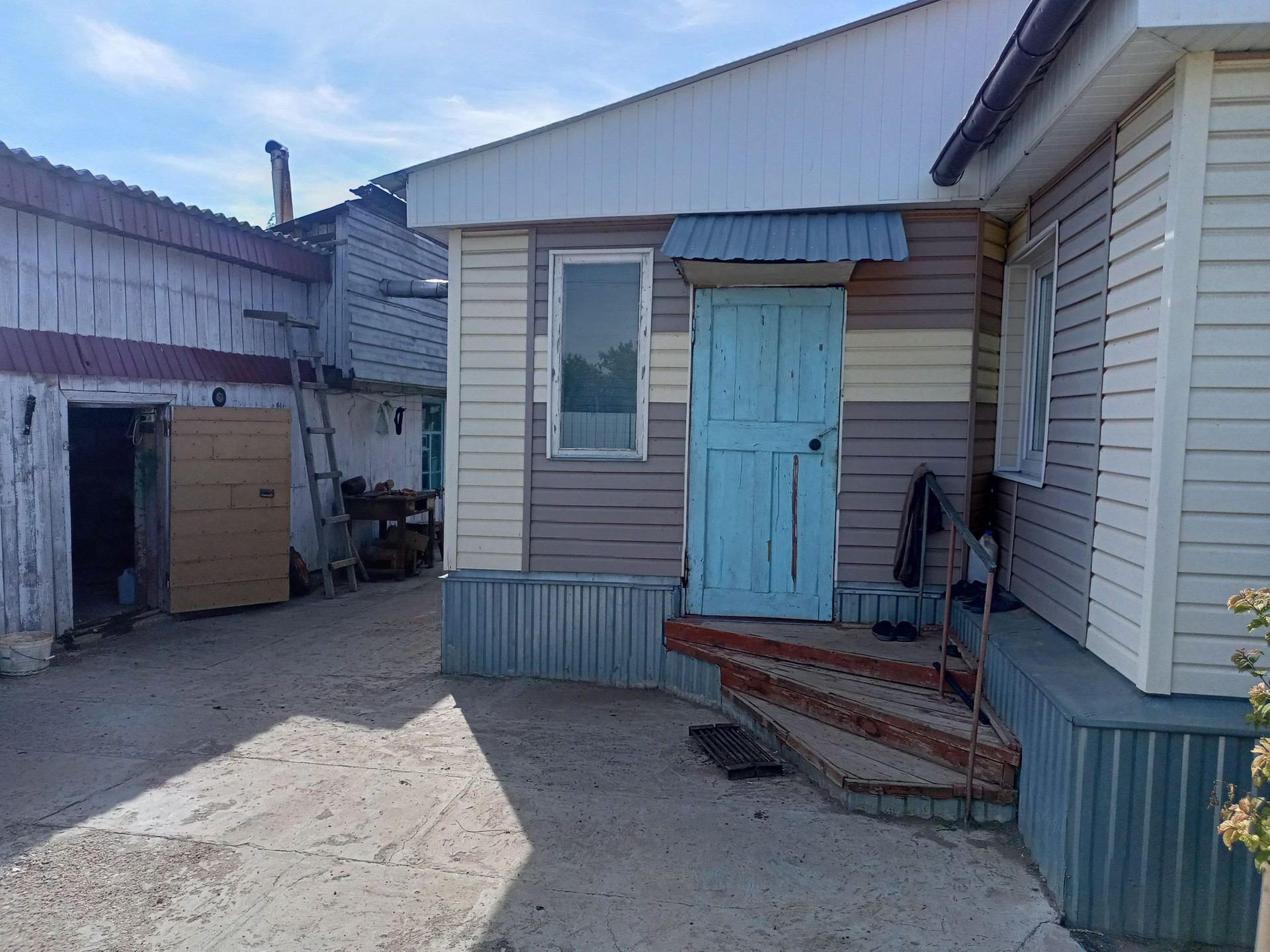 Территория участка: дровник + ещё один заливной погреб, оборудованный металлическим спуском.