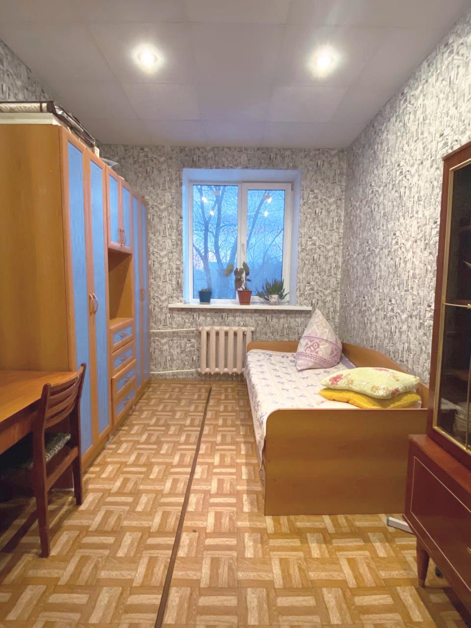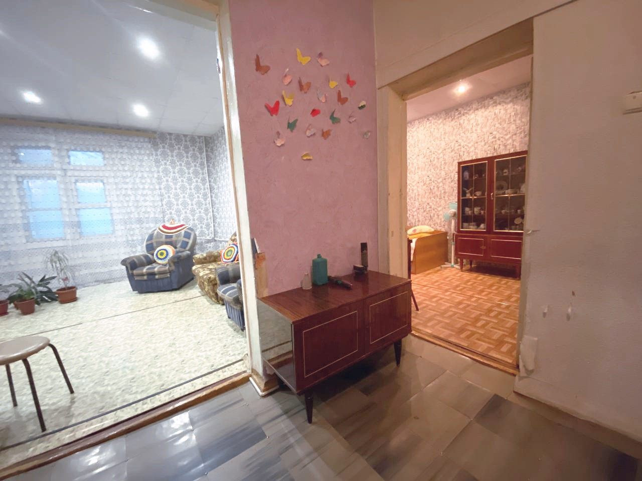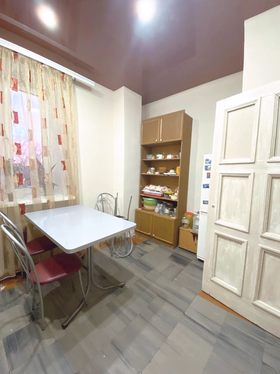 ✔️ В квартире высокие потолки, новые пластиковые окна (кроме одного), натяжной потолок на кухне, на полу линолеум, имеется кладовка для хранения заготовок или можно оборудовать в ней гардеробную.