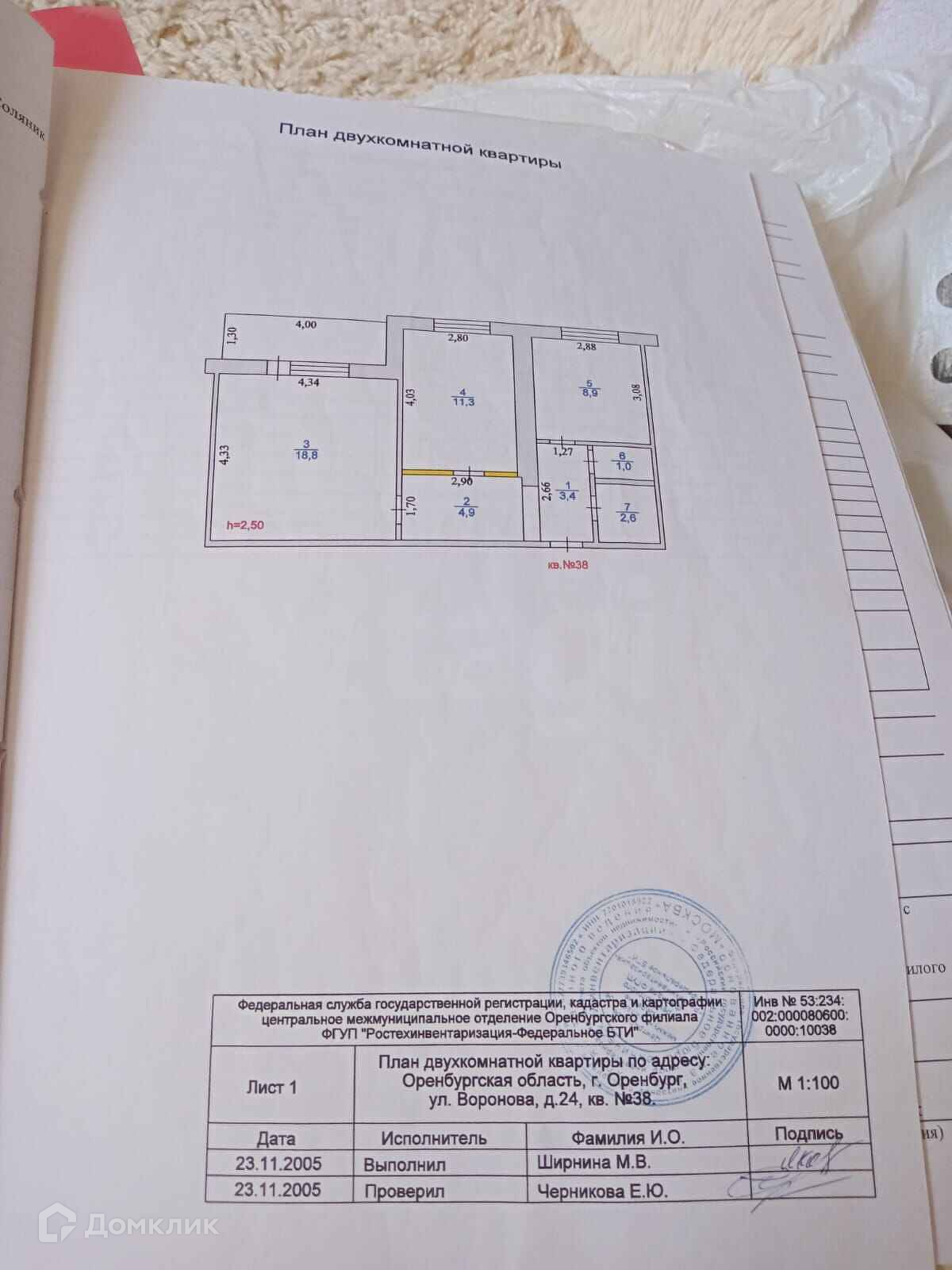 2-комнатная квартира, 50.9 м2, этаж 5 / 5, на продажу в посёлке Первомайский, улица Воронова, 24