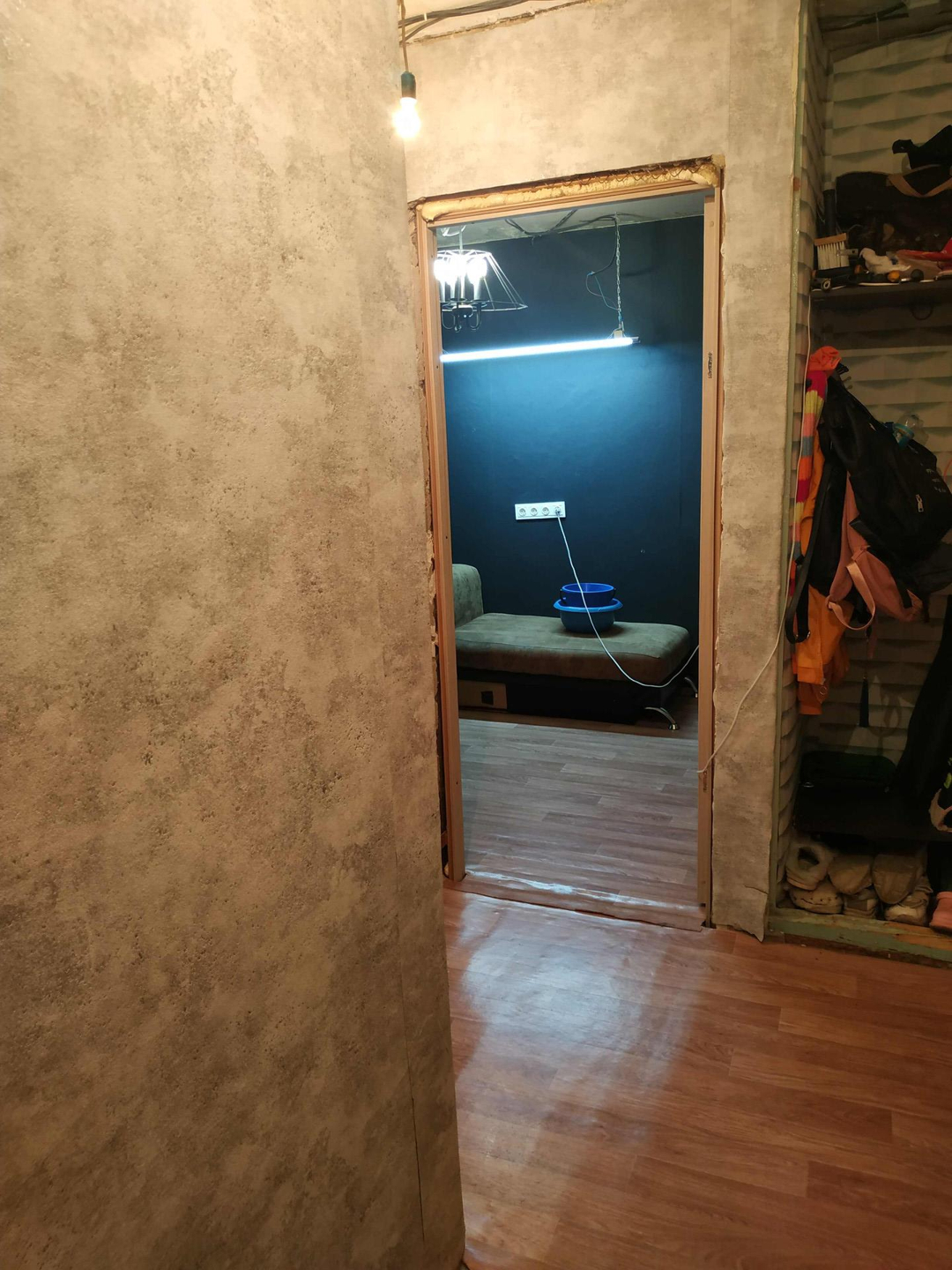 Полностью заменена проводка и канализационные трубы, поклеены свежие обои, в кухне и туалете заменены полы. Осталось натянуть потолки и еще пару моментов. Готовы к торгу!