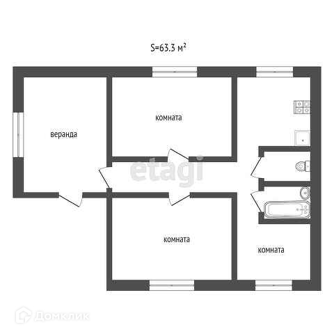 Общая площадь 63.3 м2