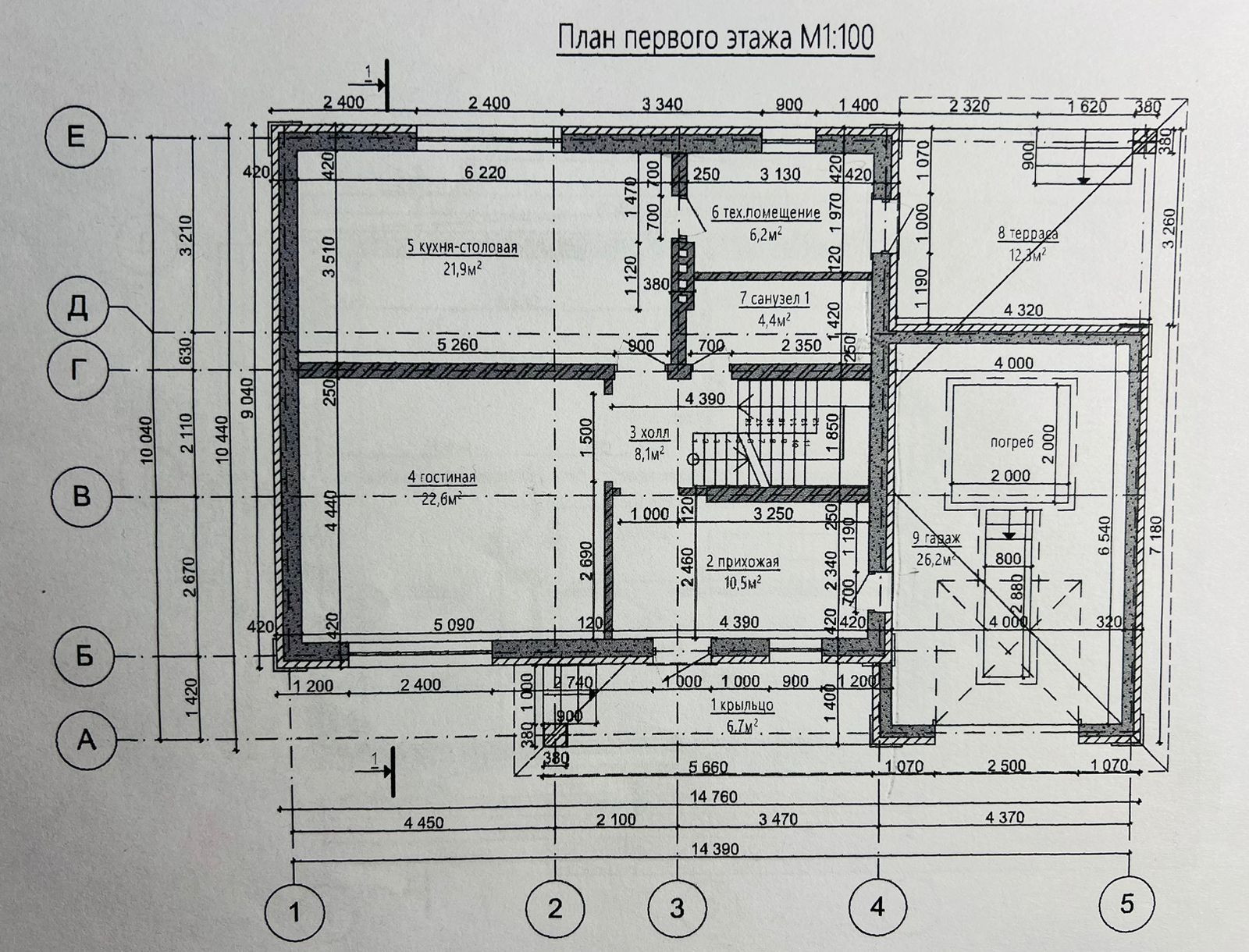 Дом расположен на участке об этомщей площадью 8,57 сотки, площадь дома составляет 195 м². На 1 этаже дома: прихожая 10.5 м², холл 8.1 м², гостиная 22.6 м², кухня - столовая 21.9 м², техническое помещение 6.2 м², санузел 4.4 м², гараж 26.2 м². На 2 этаже дома: спальня 22.6 м², спальня 14.8 м², спальня 15.2 м², санузел, коридор 7.2м². У дома имеются крыльцо 6.3 м² и терраса 12.3 м².