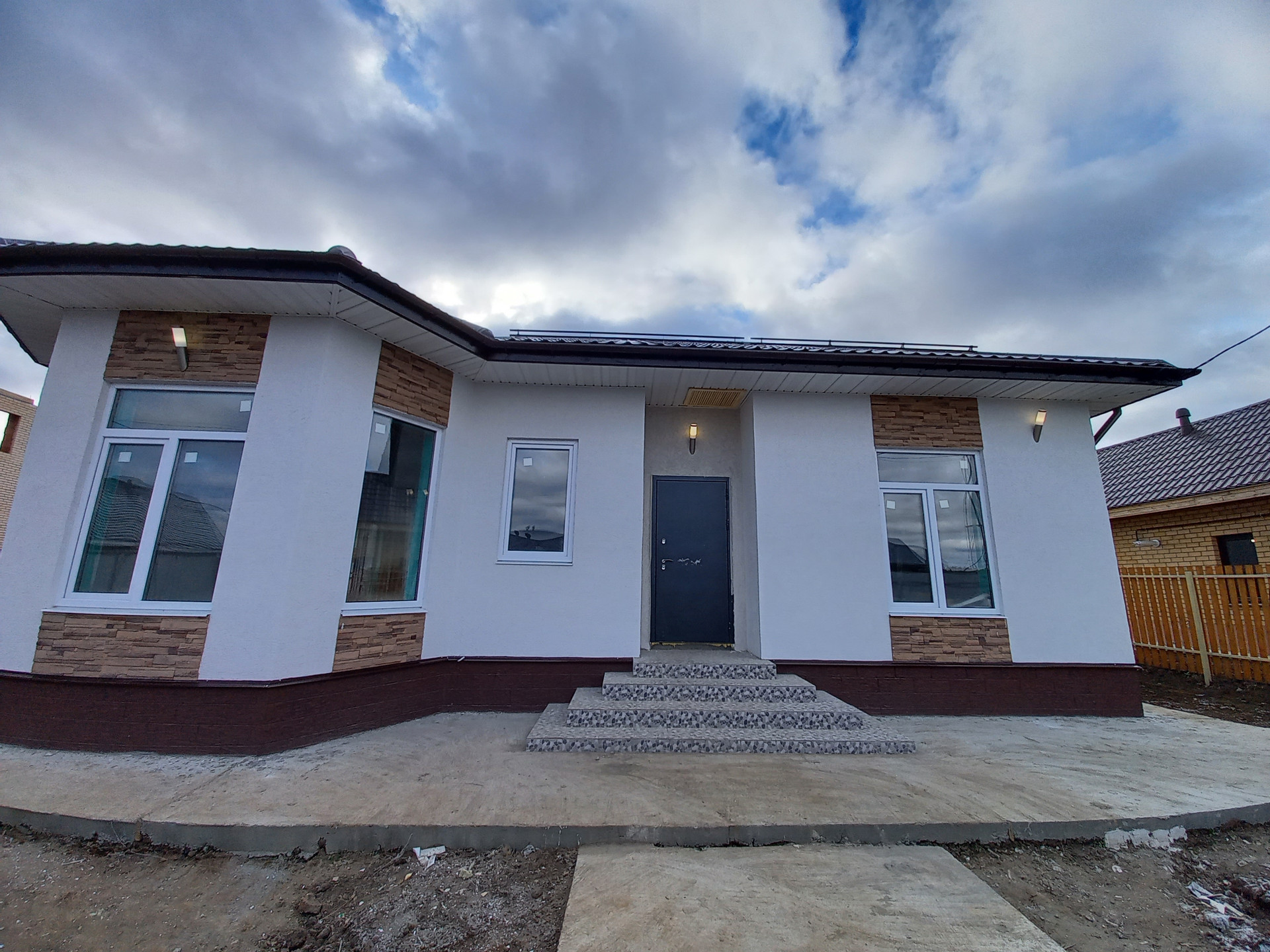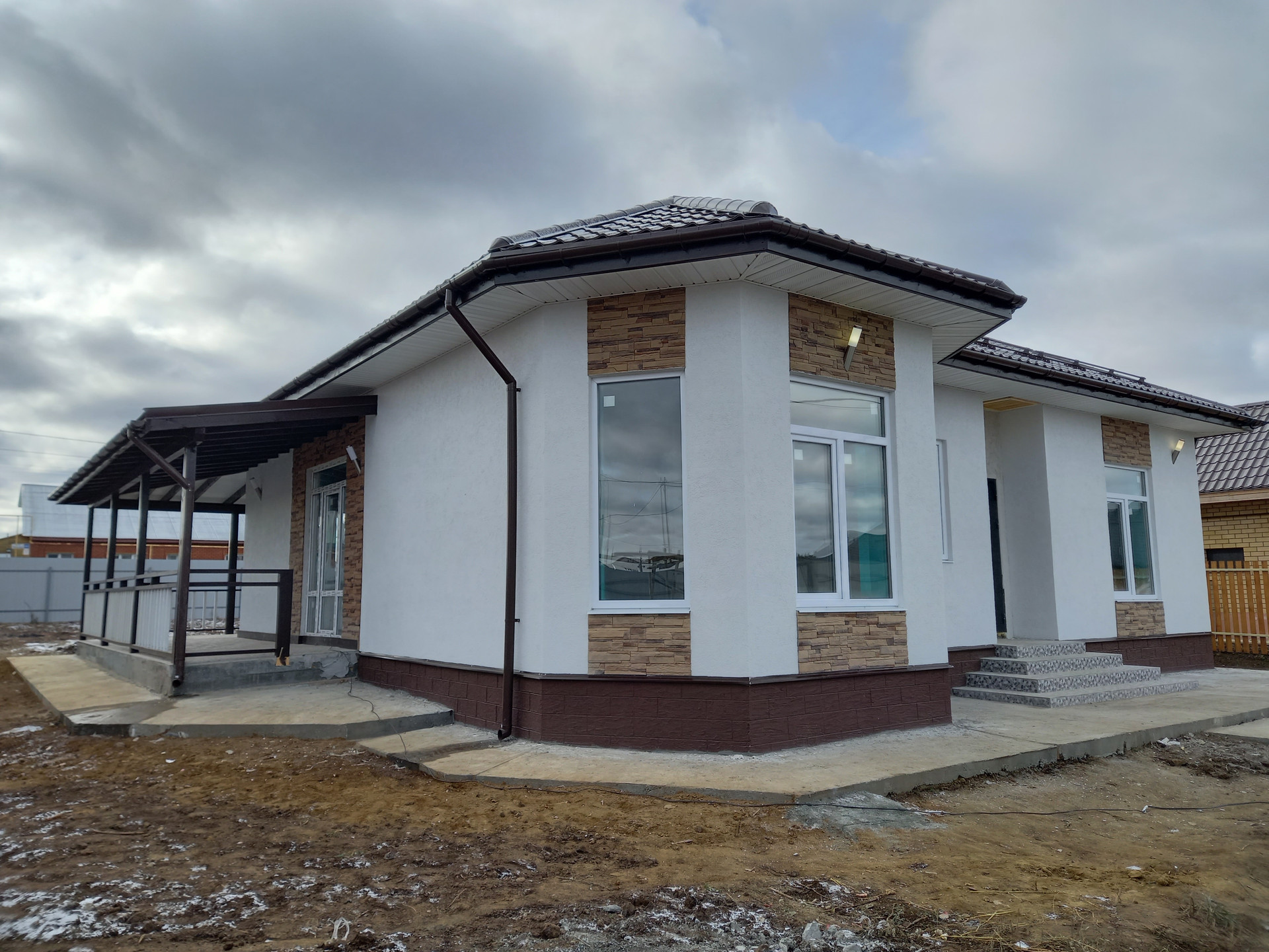 • Крыша с водостоками, бетонная отмостка с желобами