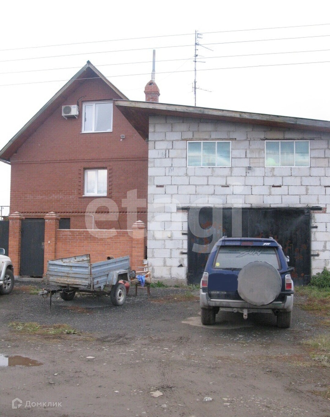 Два гаража на три машины и мастерская. Оба гаража оборудованы смотровыми ямами. Первый гараж - пенобетон. Гараж имеет два этажа, верхний можно использовать под склад. Второй гараж встроен в дом и используется как спортзал. Имеется гаражное оборудование: промышленный трехфазный сварочный аппарат, генератор, два верстака, циркулярная пила. Большая овощная яма 7 м кв с отдельным входом из гаража. Два теплых курятника.