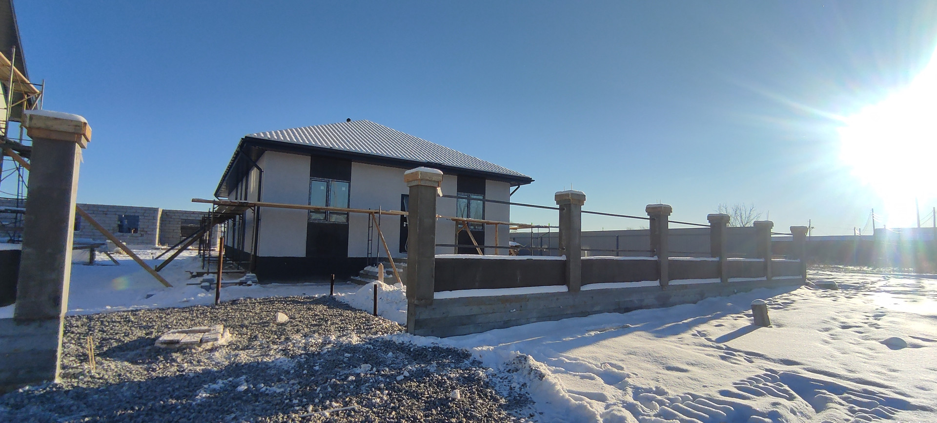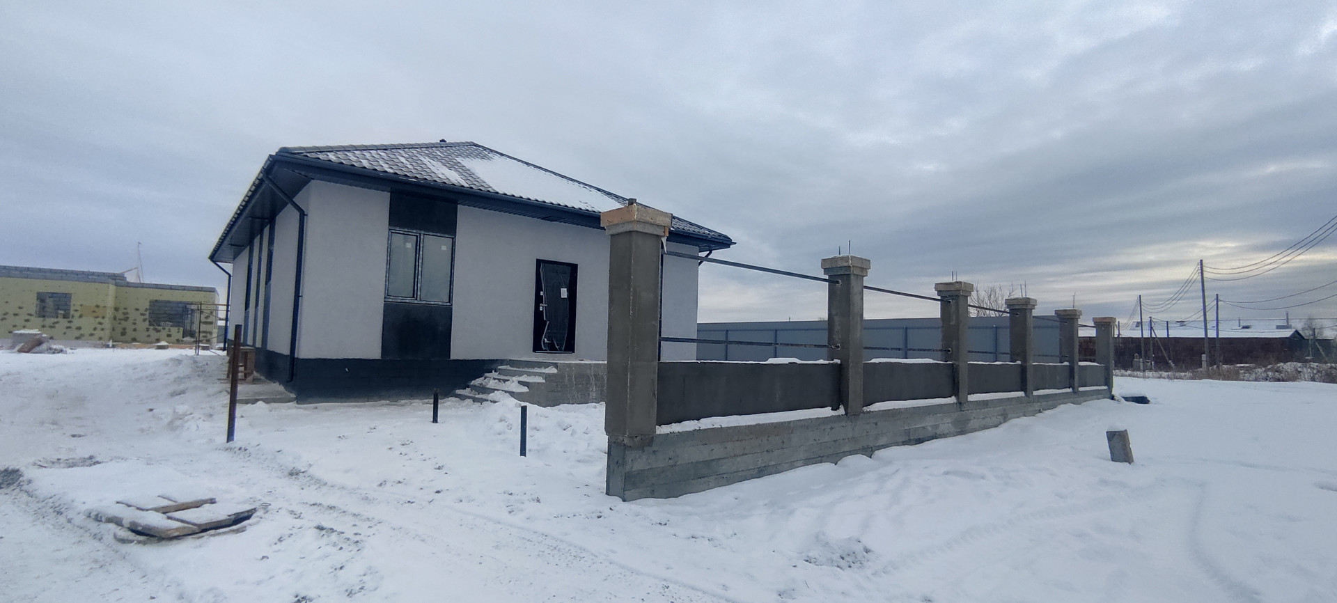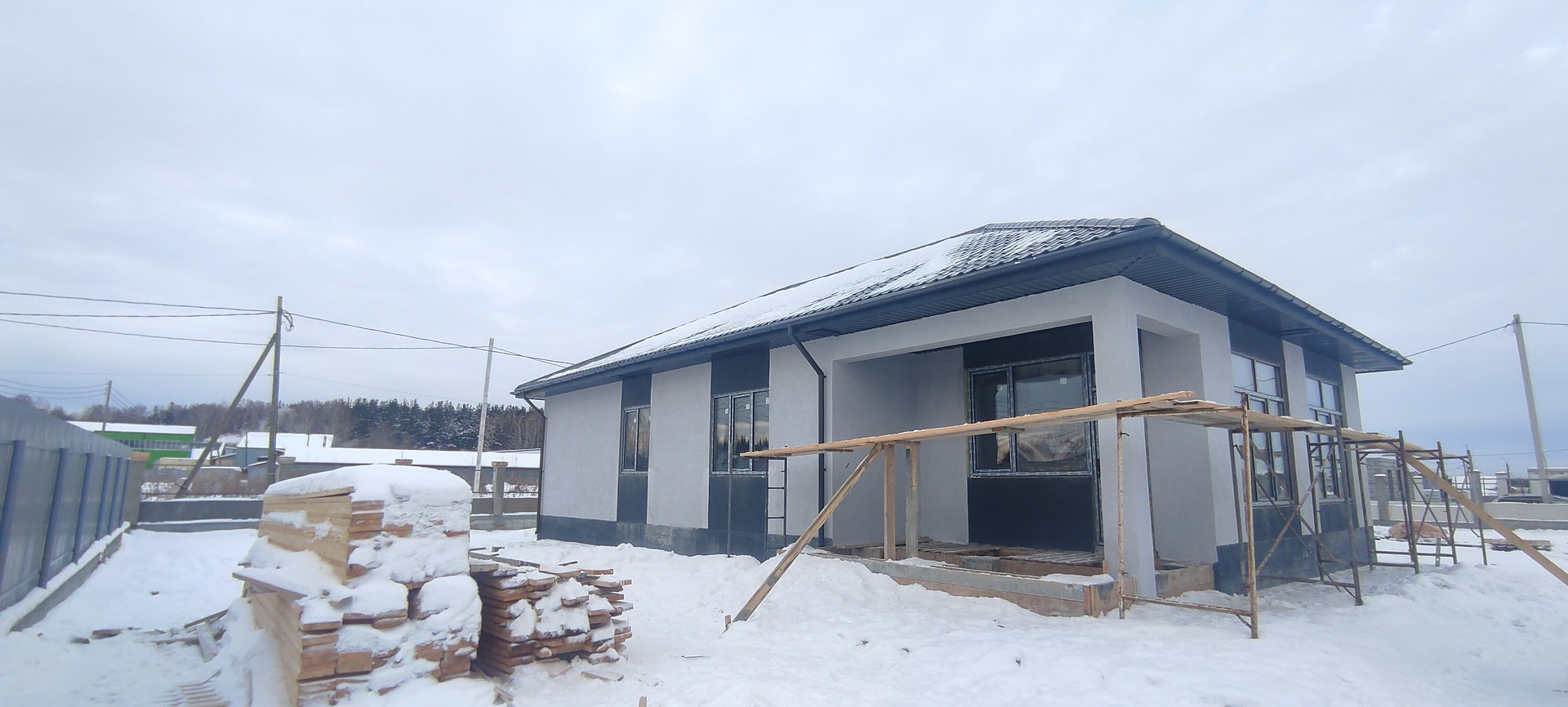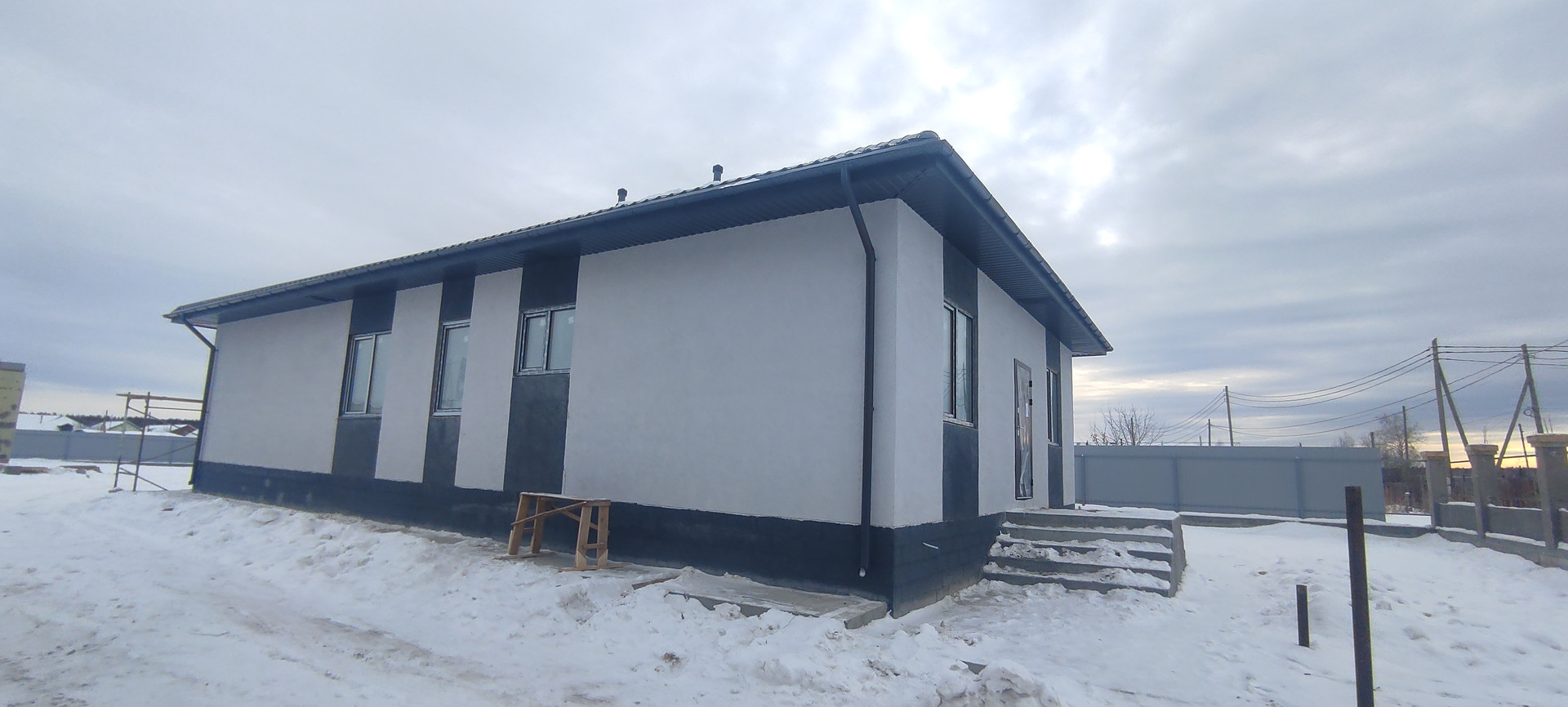 Коттедж с забором по всему периметру в пос. Первомайский, отделка "под ключ"! Три изолированных спальни + кухня-столовая и отдельная просторная гостиная с выходом на крытую террасу! В доме два санузла, а также котельная под газ. Индивидуальная скважина, локальная канализация. Отопление от теплых полов + радиаторы у панорамных окон.