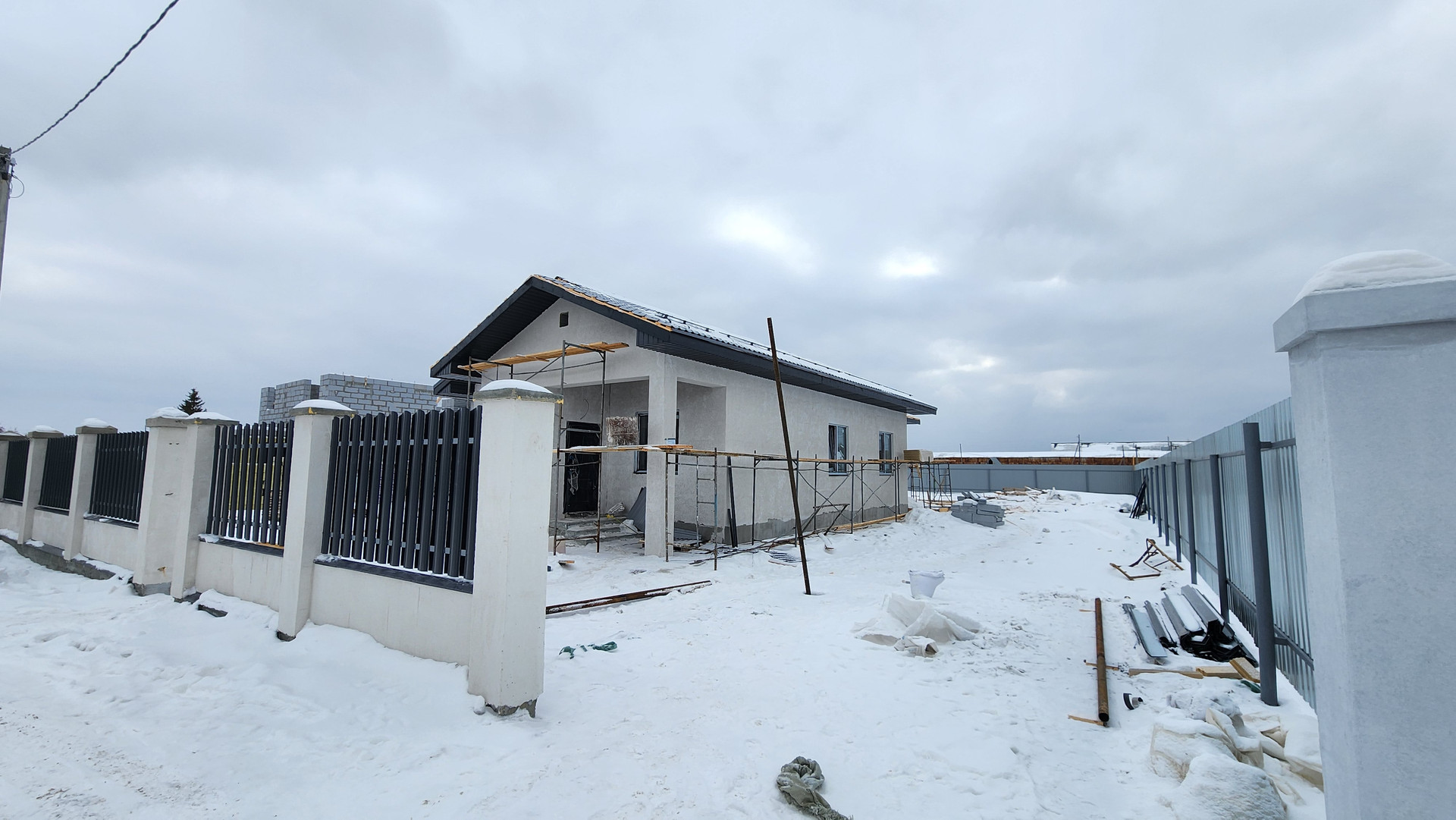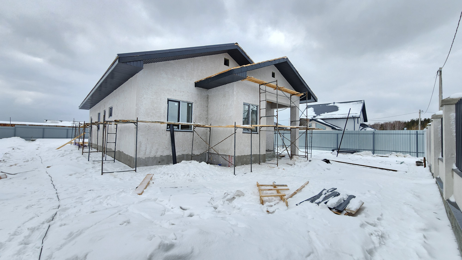Коттедж с забором, откатными воротами, калиткой и навесом под ДВА автомобиля в пос. Первомайский, выполнен "под ключ"! Три изолированных спальни (!есть возможность в гостиной зонировать четвертую!) + кухня-столовая и отдельная просторная гостиная СО ВТОРЫМ СВЕТОМ! В доме два санузла, а также котельная под газ. Индивидуальная скважина, локальная канализация. Отопление от теплых полов + радиаторы у панорамных окон.