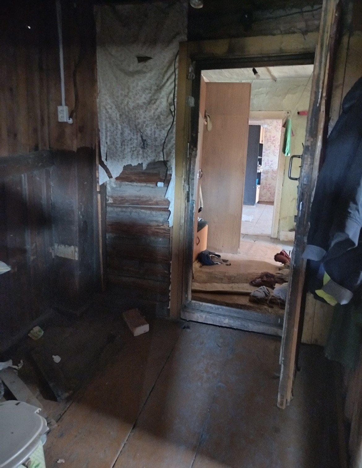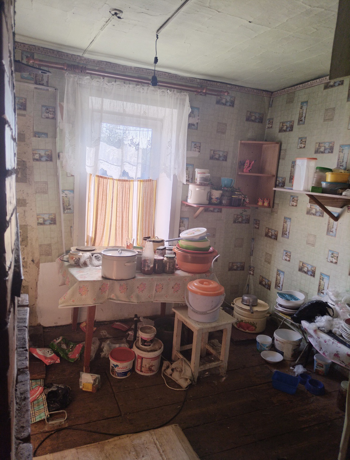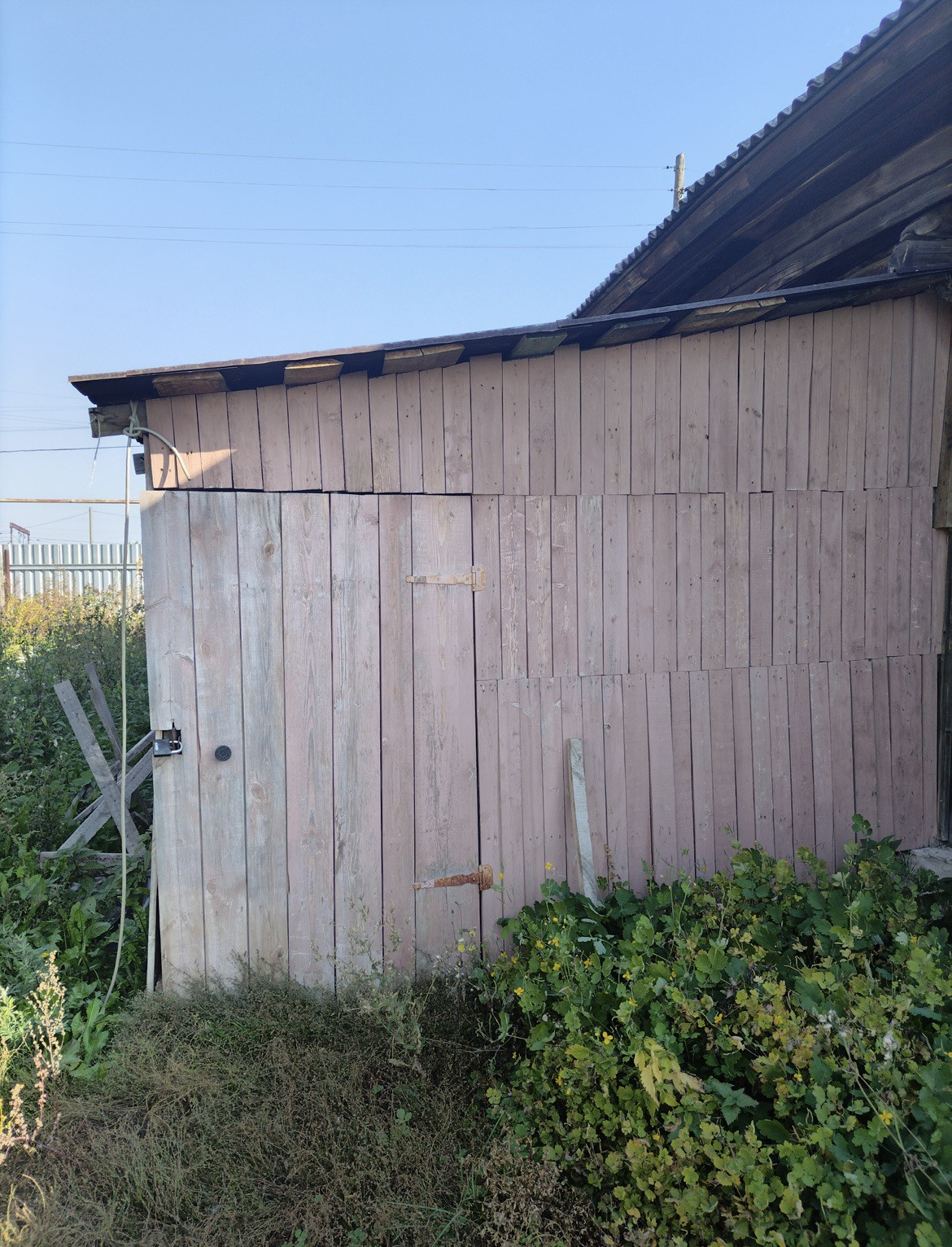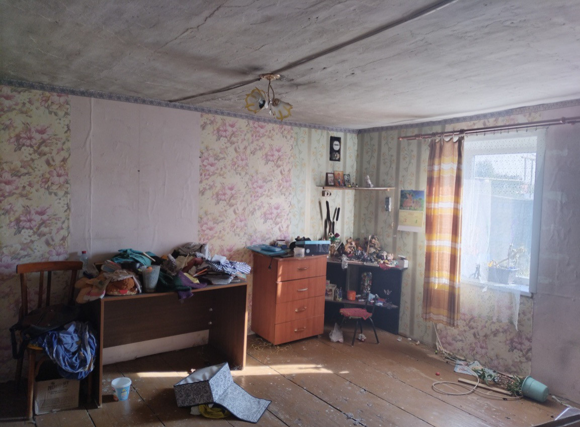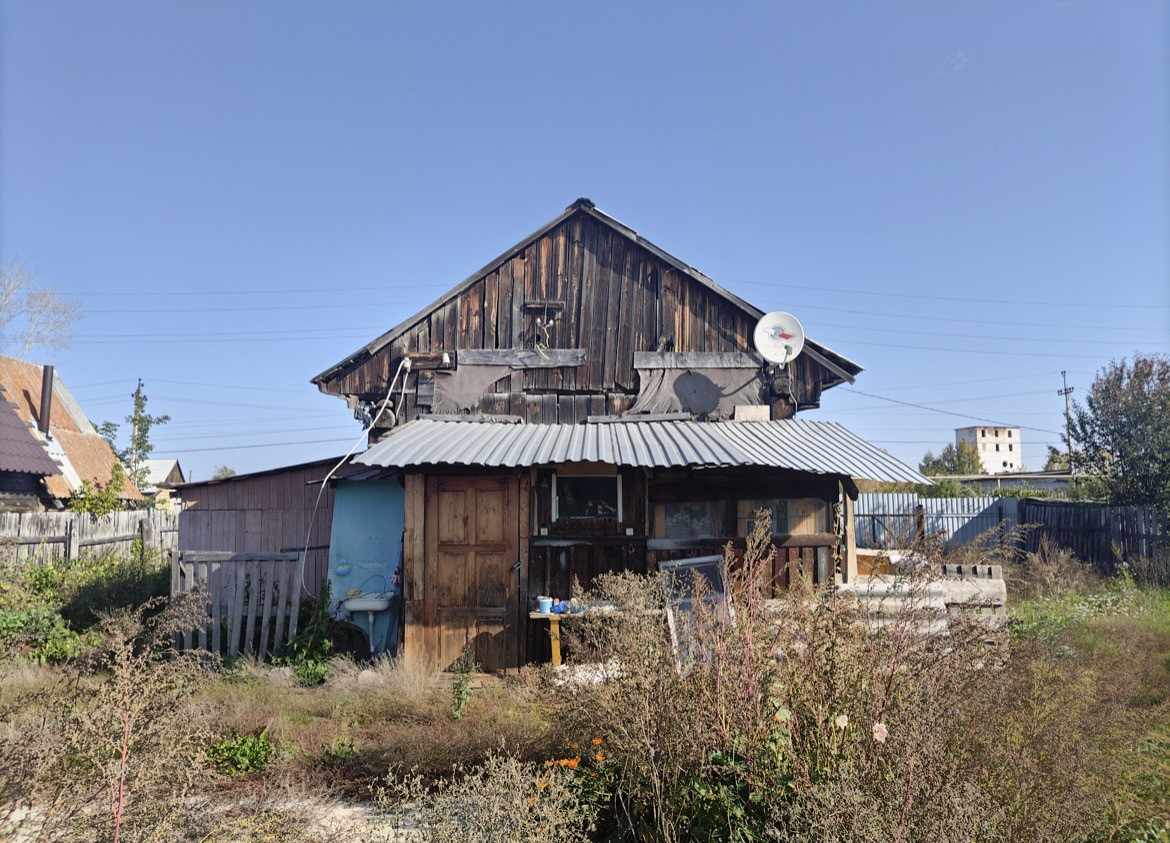 Дом из сруба, стоит на бетонном фундаменте. 2 комнаты (зал, кухня), имеется чулан. В доме установлены евроокна, есть новая кирпичная печь, вода - скважина, электричество. Имеется пристройка в виде сарая (может быть использована под гараж). Есть ТВ тарелка. Туалет на участке. Территория дома ограждена забором.