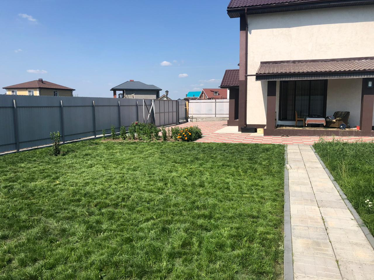 Просторный двор, забор на бетонном основании с высотой 2,5м. Выложена плитка под парковку у дома и тротуарные дорожки. Есть второй въезд на участок с парковочным местом на одну машину. Участок угловой, находиться в самом удобном месте КП. На участке имеется теплица 8*3 метра, хоз. блок, мангальная зона. Площадь участка 9,28 сотки. Есть возможность подключить высокоскоростной интернет. Прекрасные соседи.