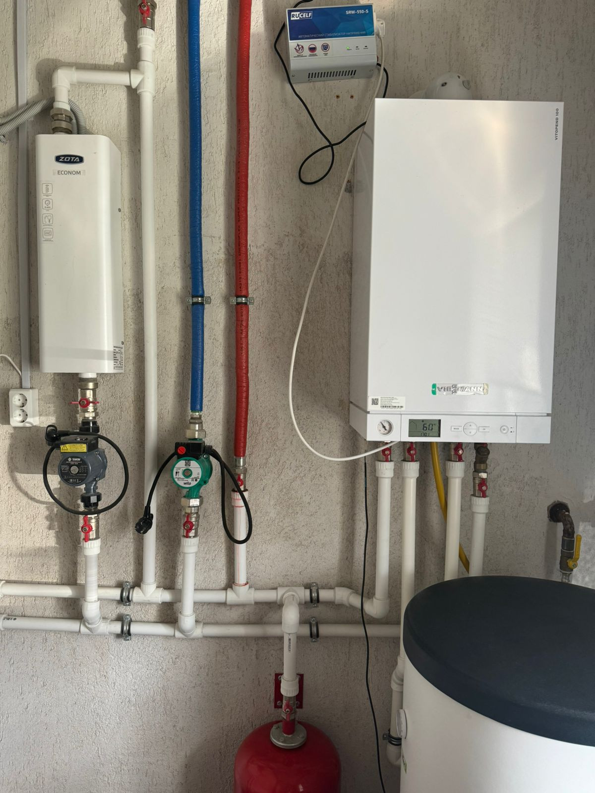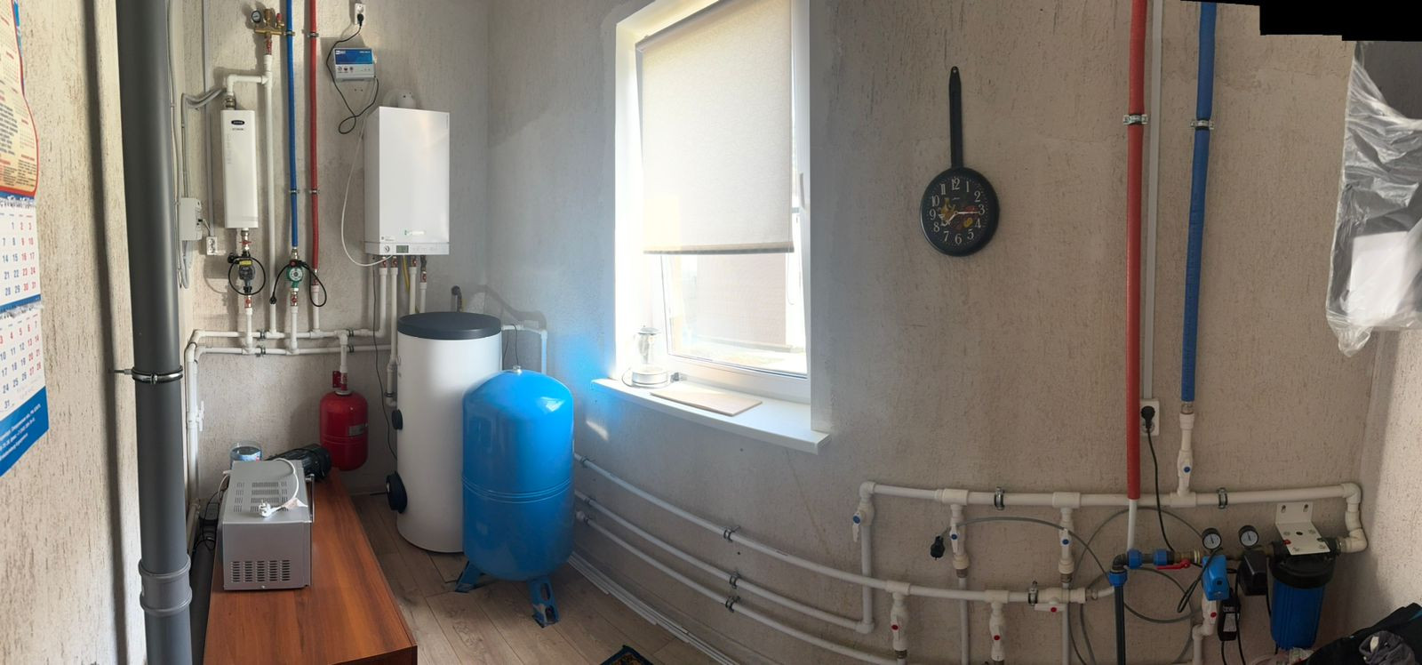 Котельная оснащена всем необходимым. Газовый котел марки VIESSMANN, бойлер на 150 литров, накопитель 150 литров. Так же, установлен запасной электро котел.