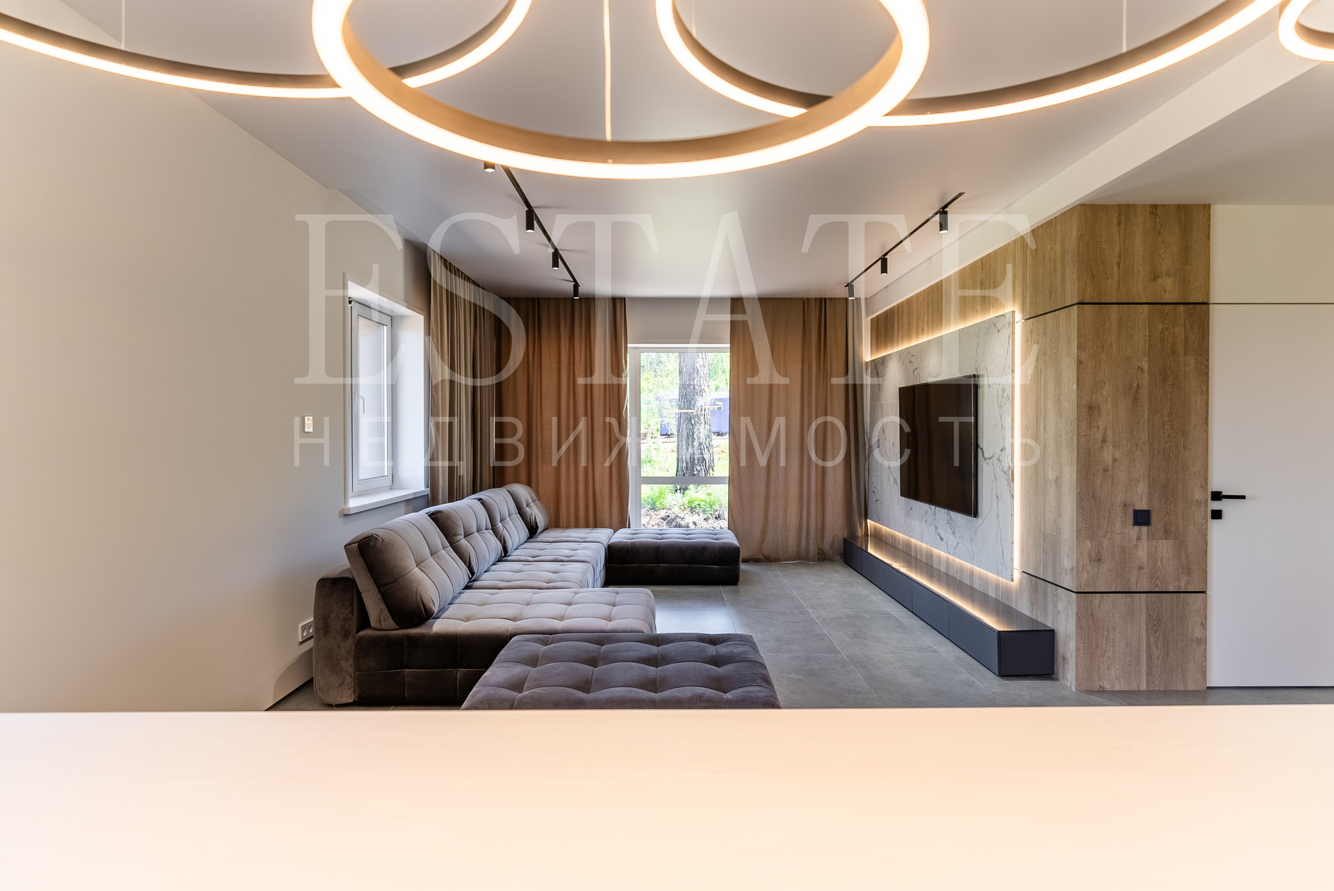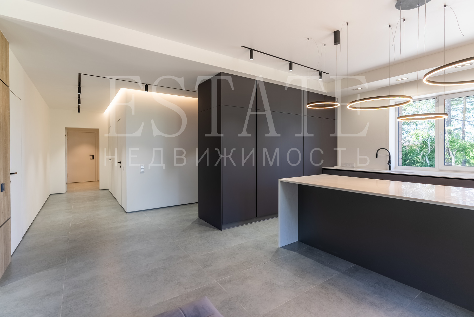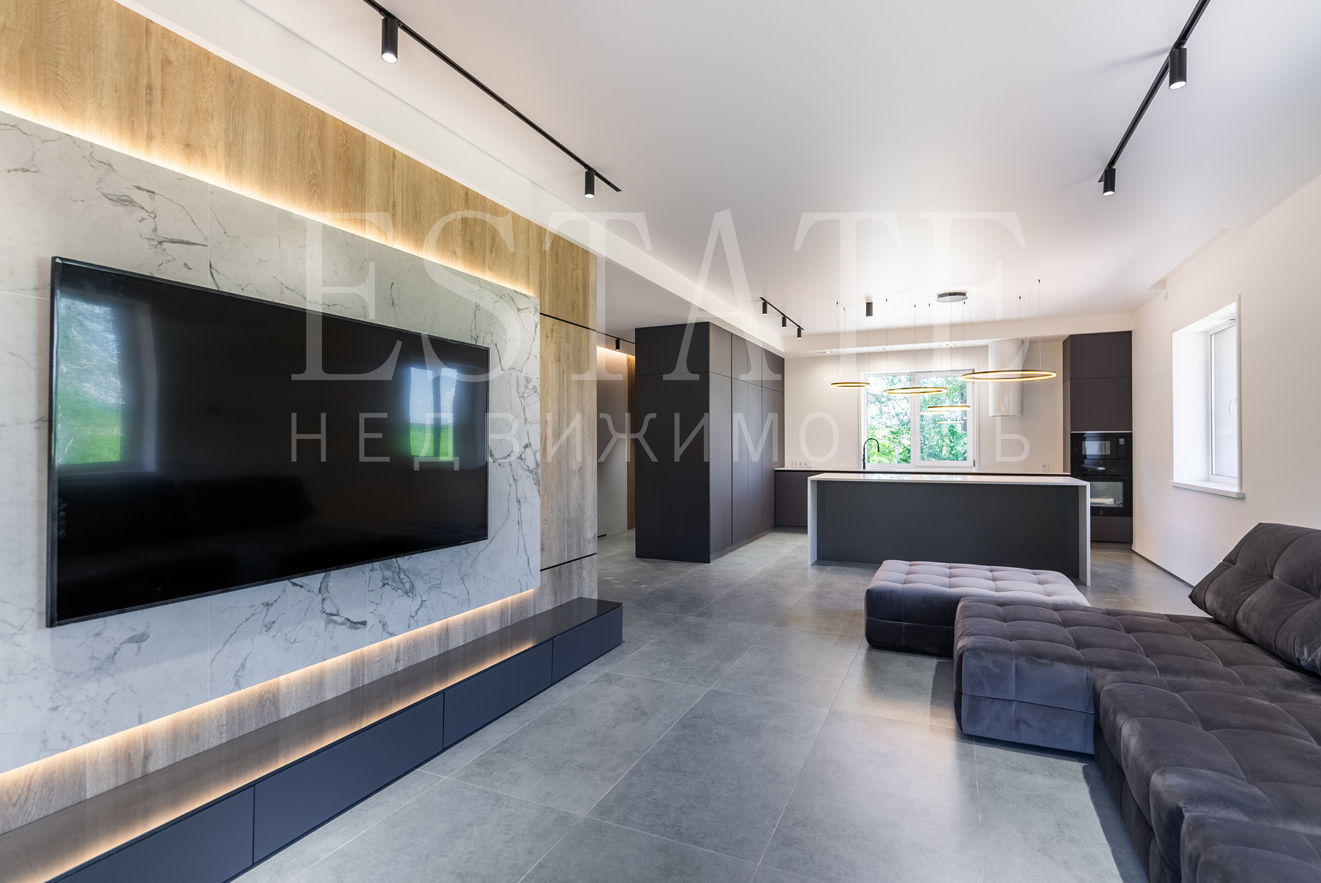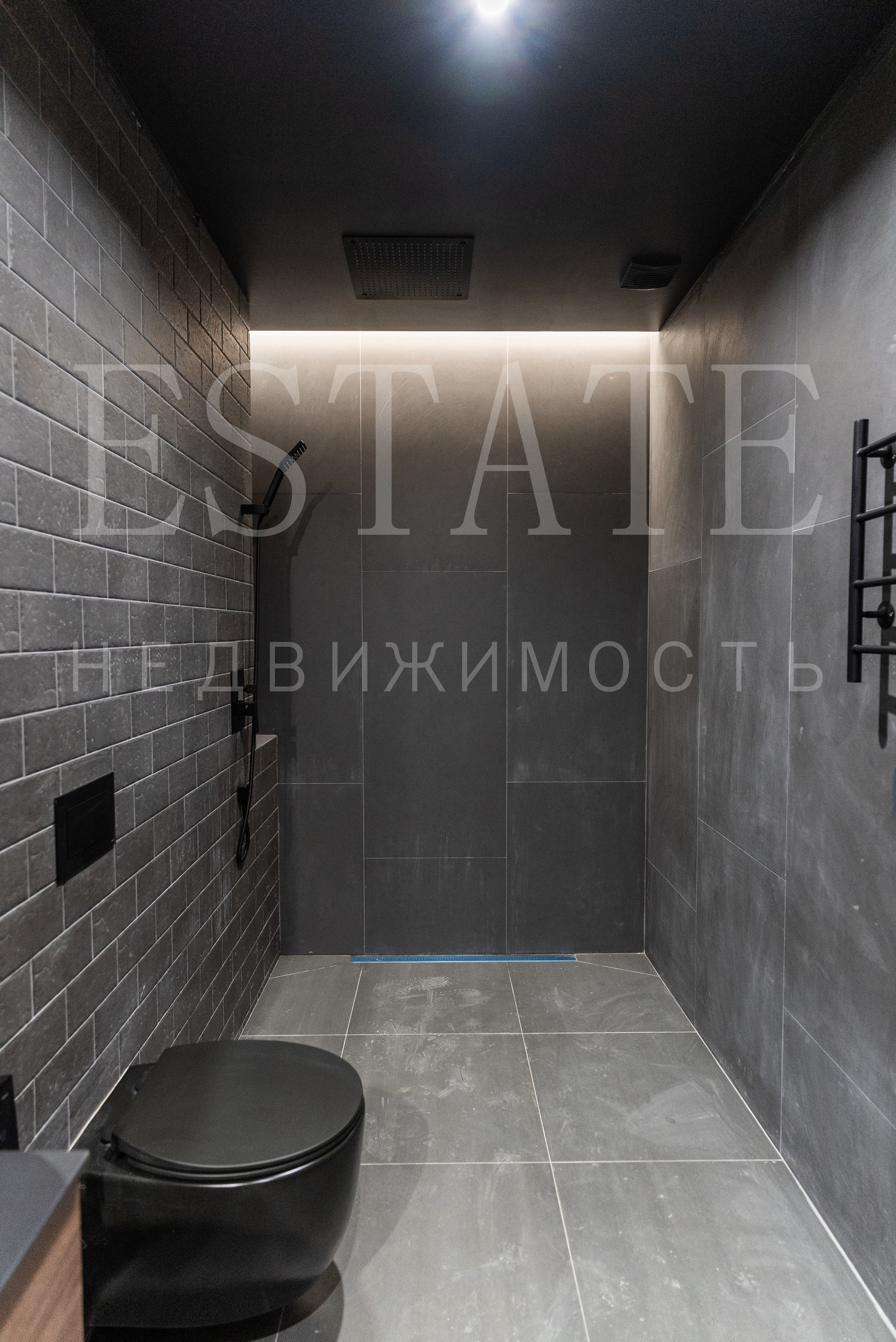 • в отделке элементов стен и потолков использован полированный керамогранит 1200х600, кварцвинил под дерево.