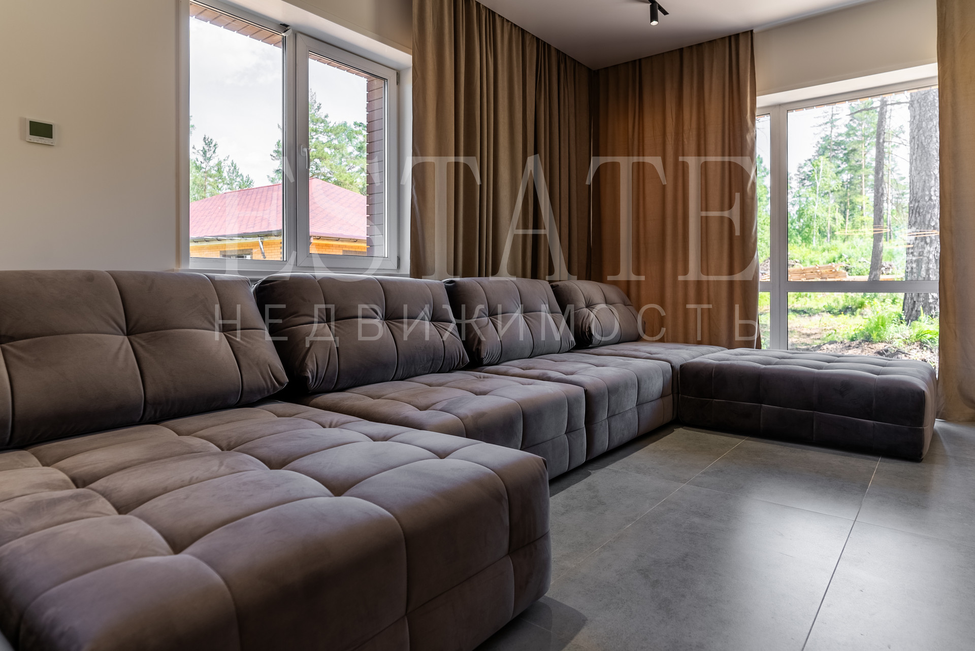 Мебель. Дом на 80% укомплектован дорогой мебелью. Большой угловой диван в гостиной, кровать и рабочее место в спальне, кухня , шкафы для одежды и для встроенной техники.