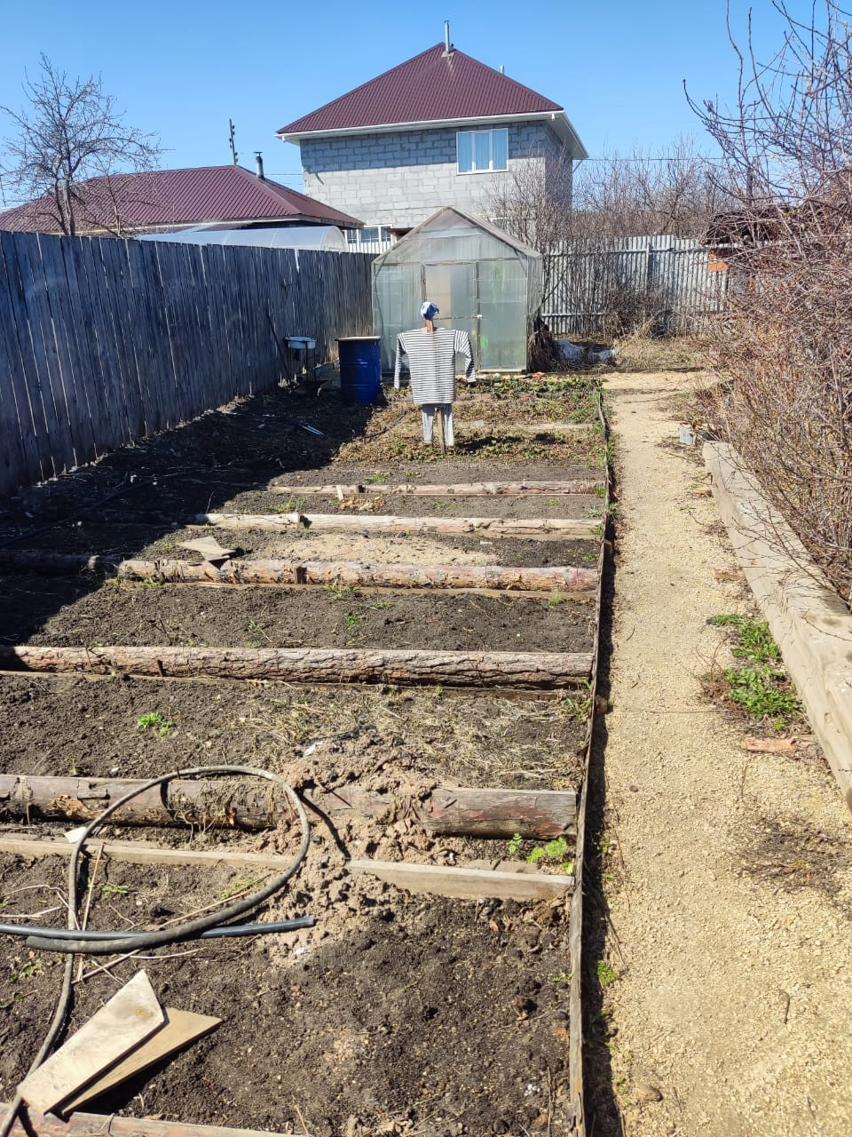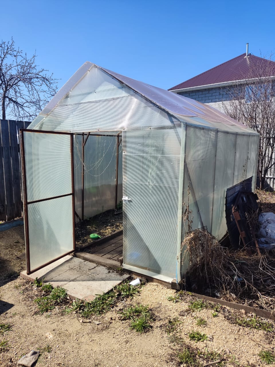 - большой огород с теплицей 2,8*4м,оформленными грядками, плодовыми деревьями, уличным туалетом, беседкой.