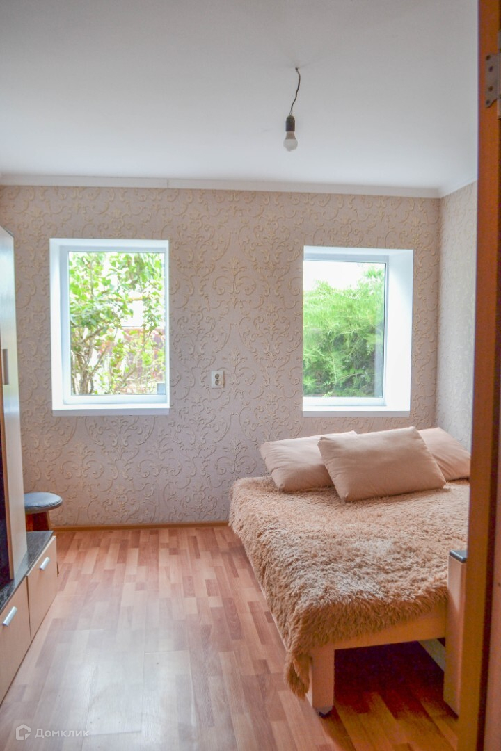 Дом 60 кв.м. имеет две комнаты, кухню-гостиную, санузел и коридор .
