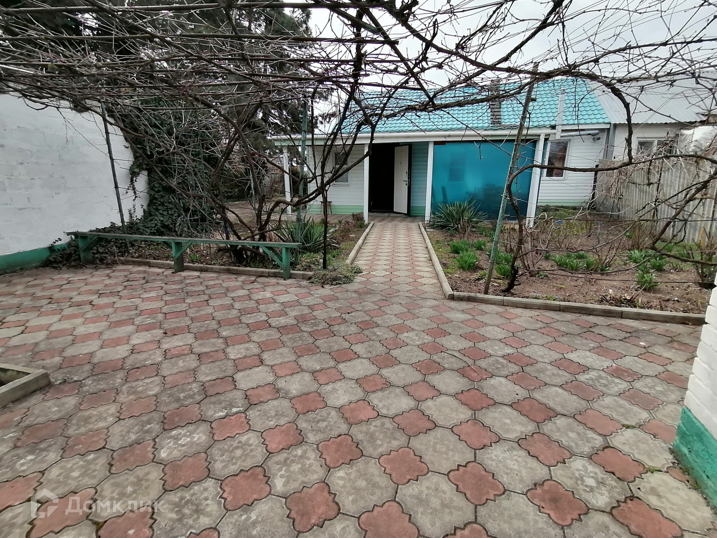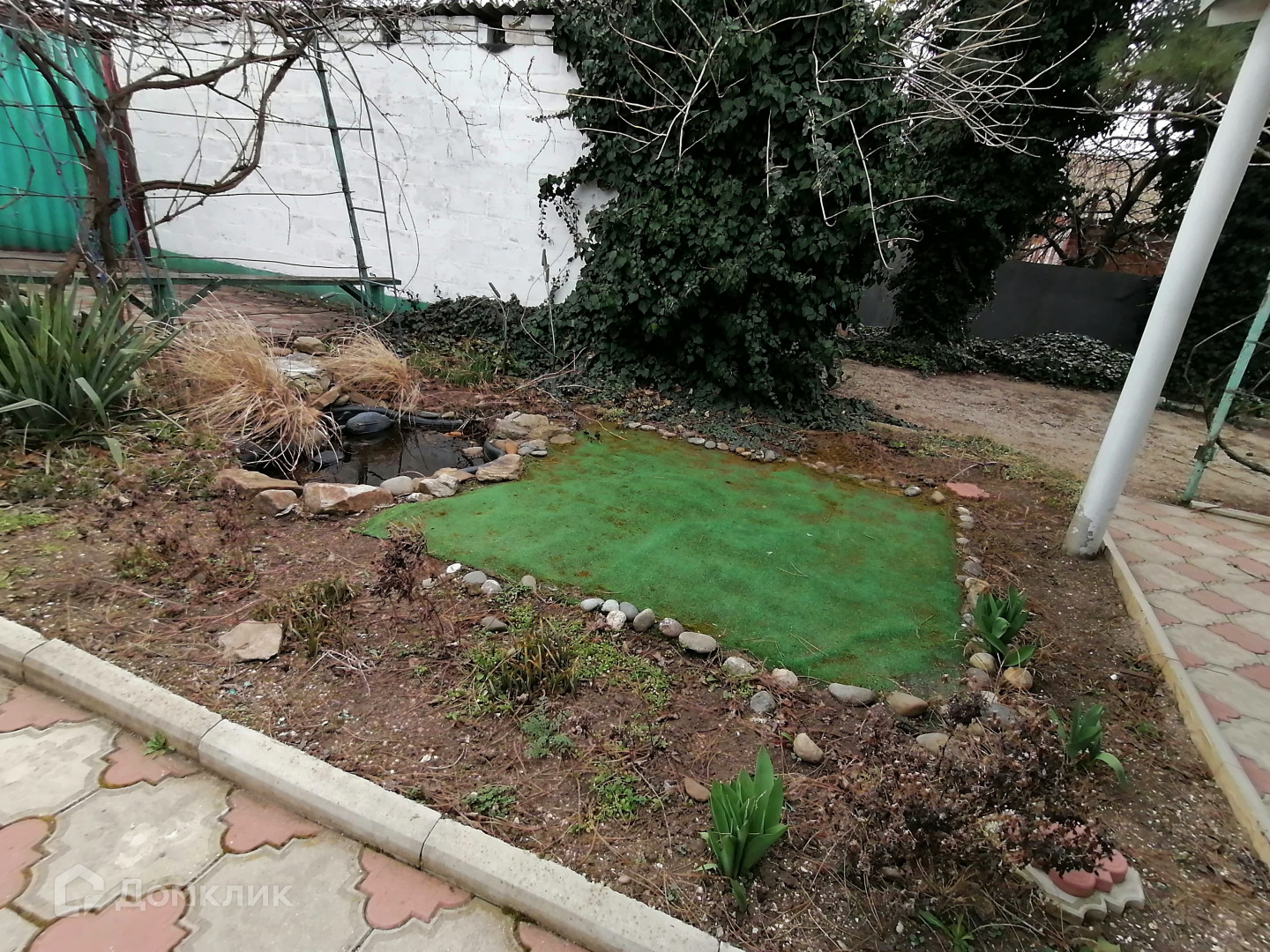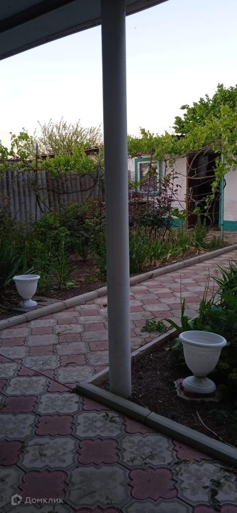 Большой участок ухожен, есть плодовые деревья, виноградник, двор в плитке, просторный навес.