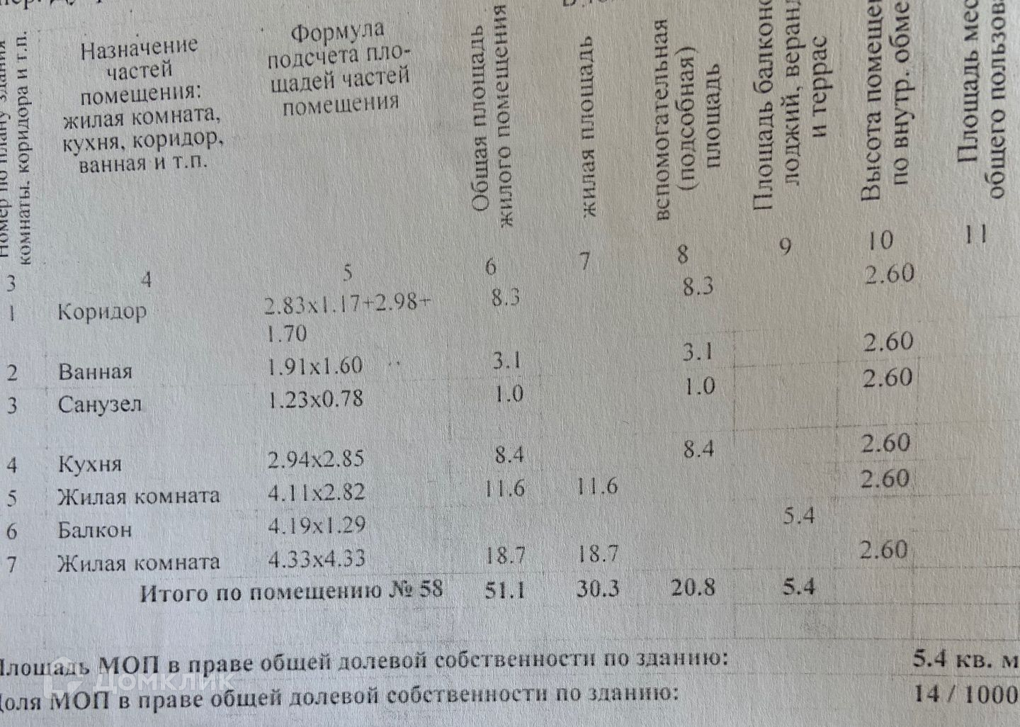 Общая площадь 51.1 м2