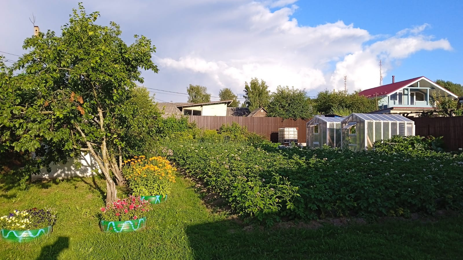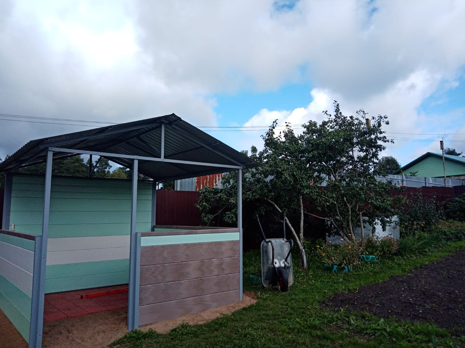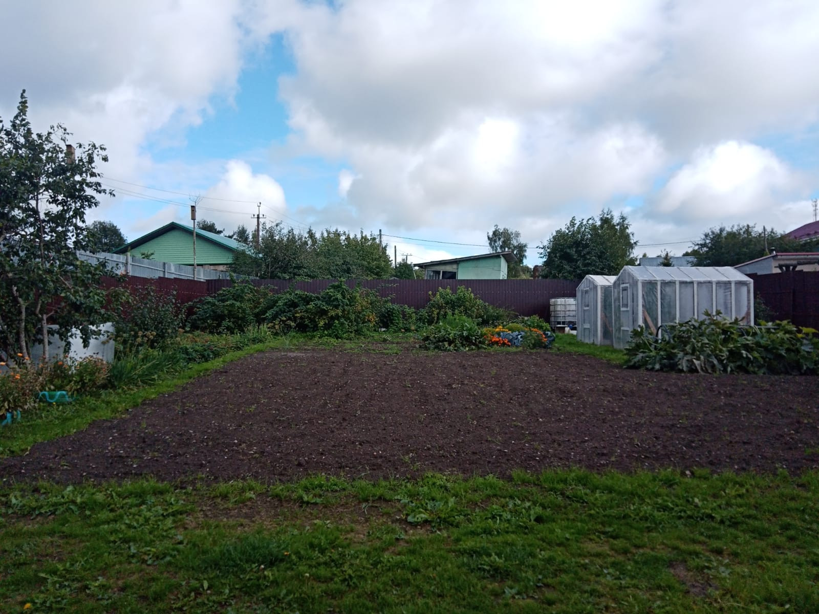 На самом участке имеется дровяник, 2 теплицы, вольер, беседка, мастерская (вагончик 6х2 метра) с верстаком и полками под инструменты. Парковочное место под автомобиль. Имеются насаждения виктория, малина, слива. Участок расположен вглубь от основной проезжей части, улица тупиковая машины не ездят.