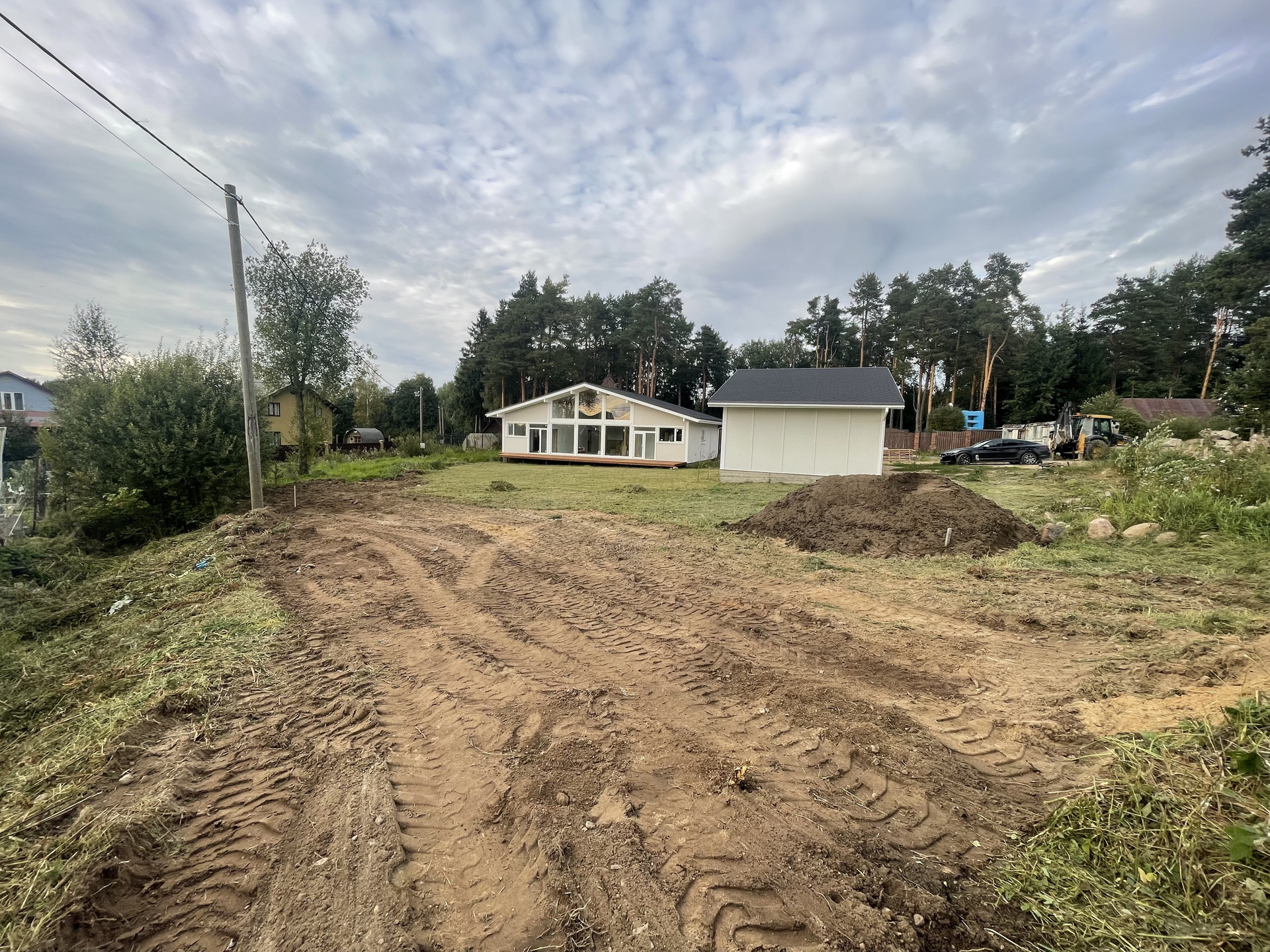 На участке высажено 30 туй, сделан газон. Сделан забор с откатами воротами и автоматикой.