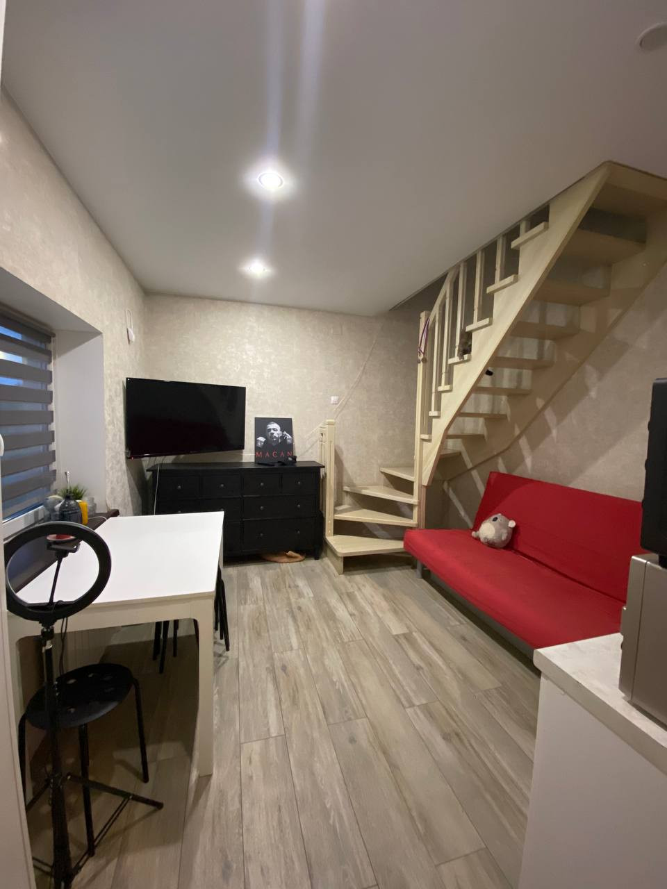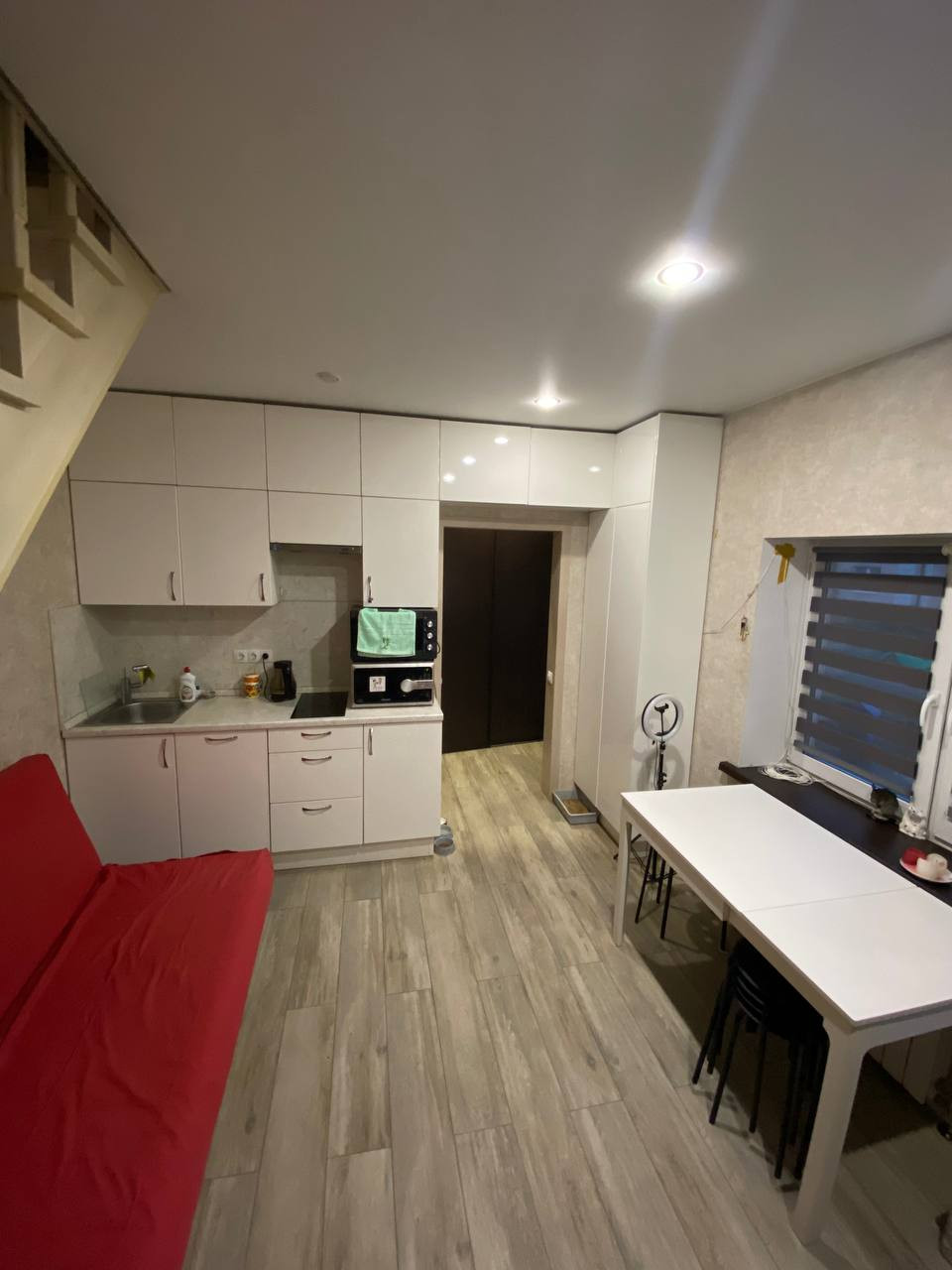 1-й этаж: кухня-гостиная, прихожая и санузел;