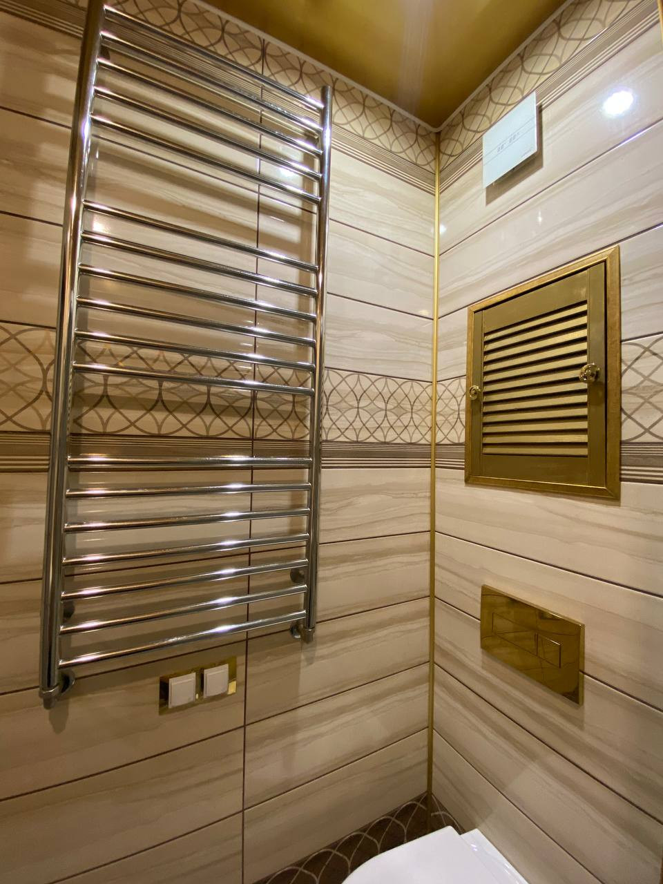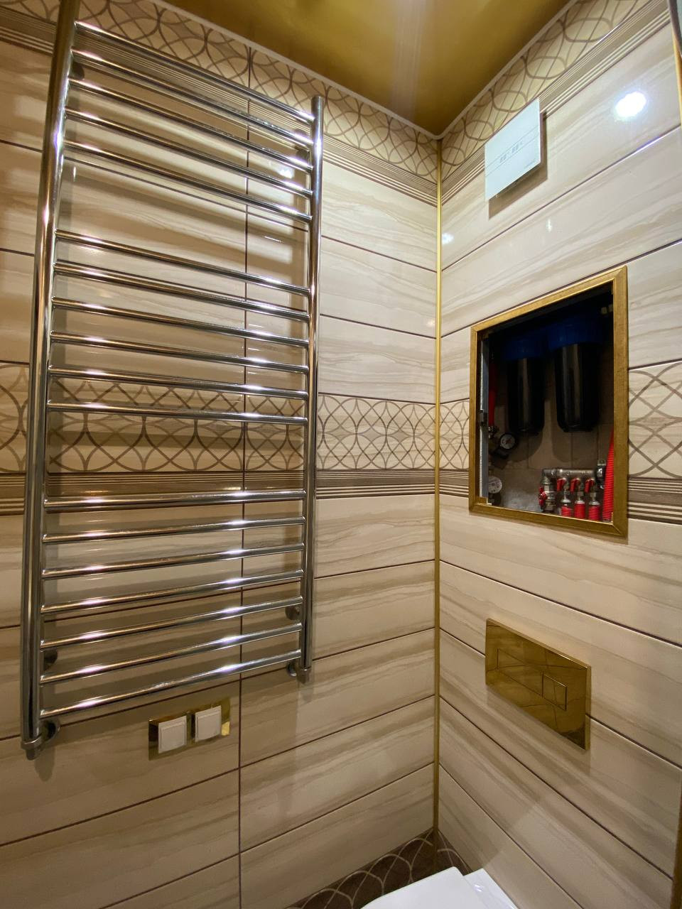 По всему первому этажу установлен теплый пол.