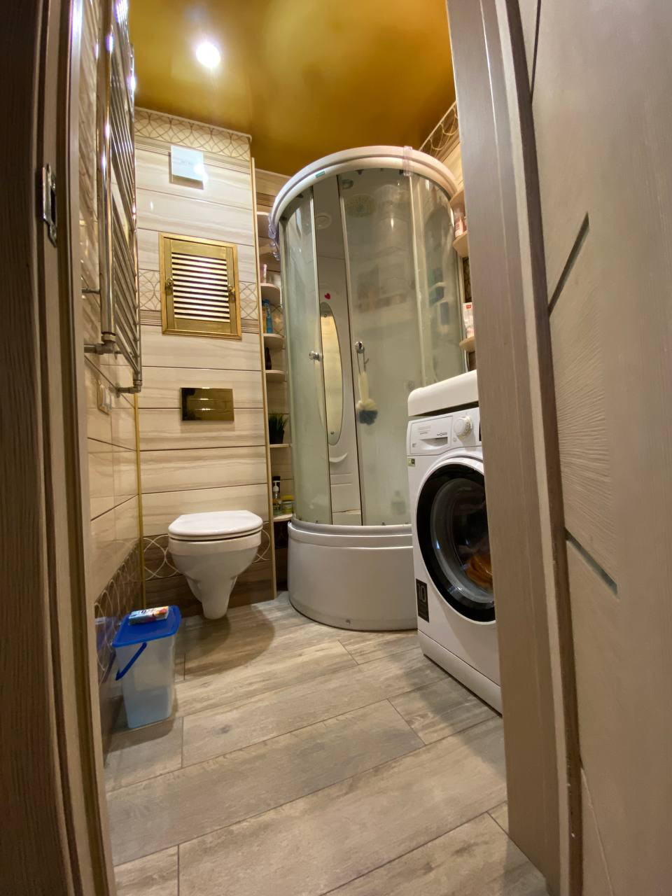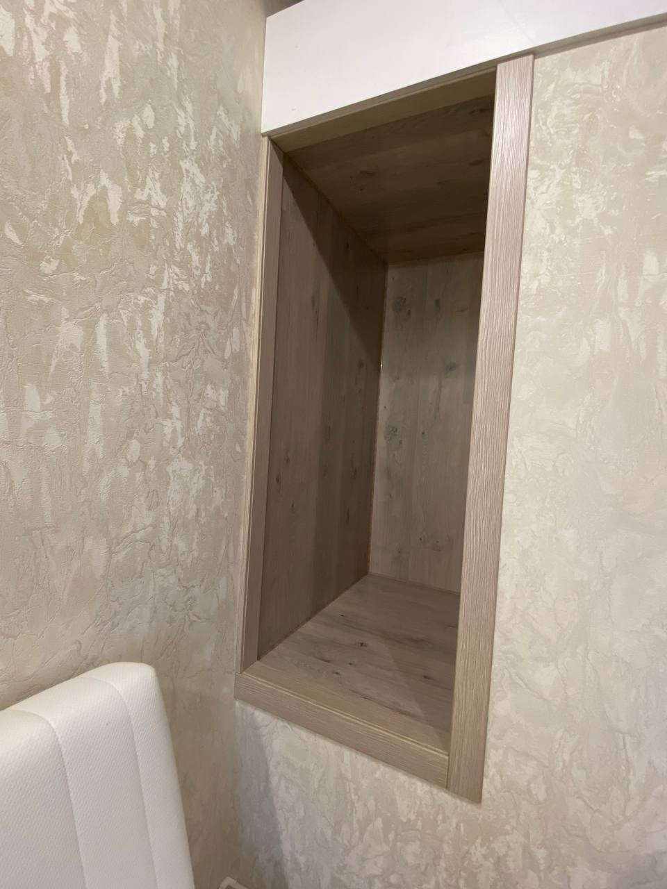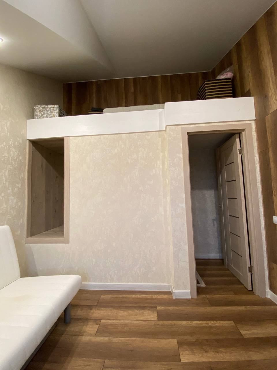 В прихожей – большая система хранения с антресолями.