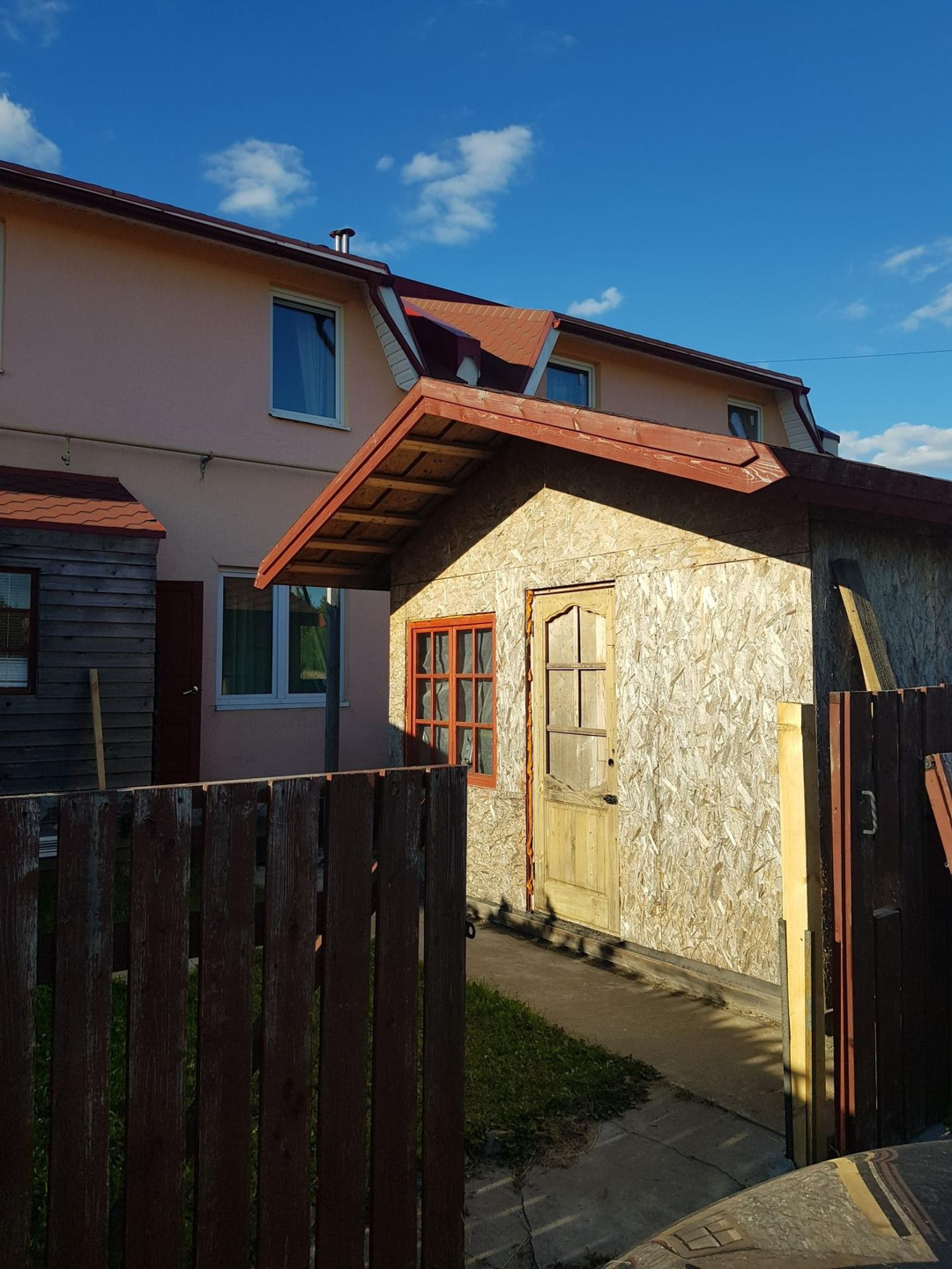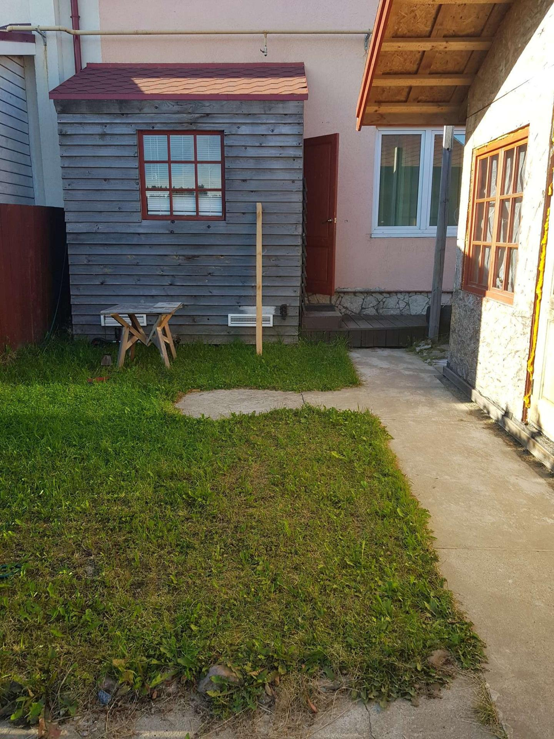 ИЖС. Площадь 0,84 сотки. Парковочное место перед участком (т.о. территория перед домом не занята под авто), засеянный газон, на участке построена беседка-сарай (очень вместительный - для хранения инструмента, запасной авторезины, туристических принадлежностей, спортинвентаря и т.п.).