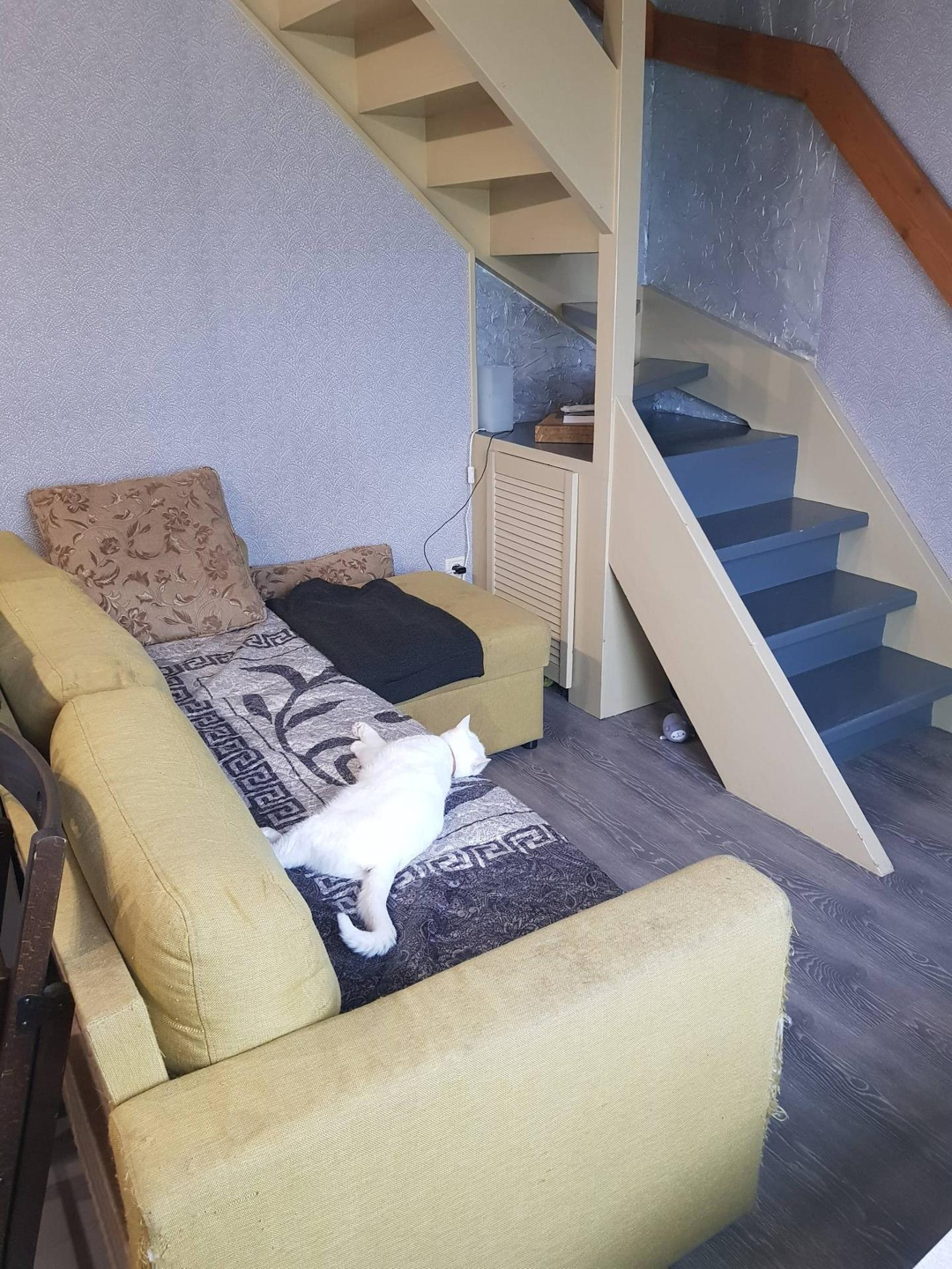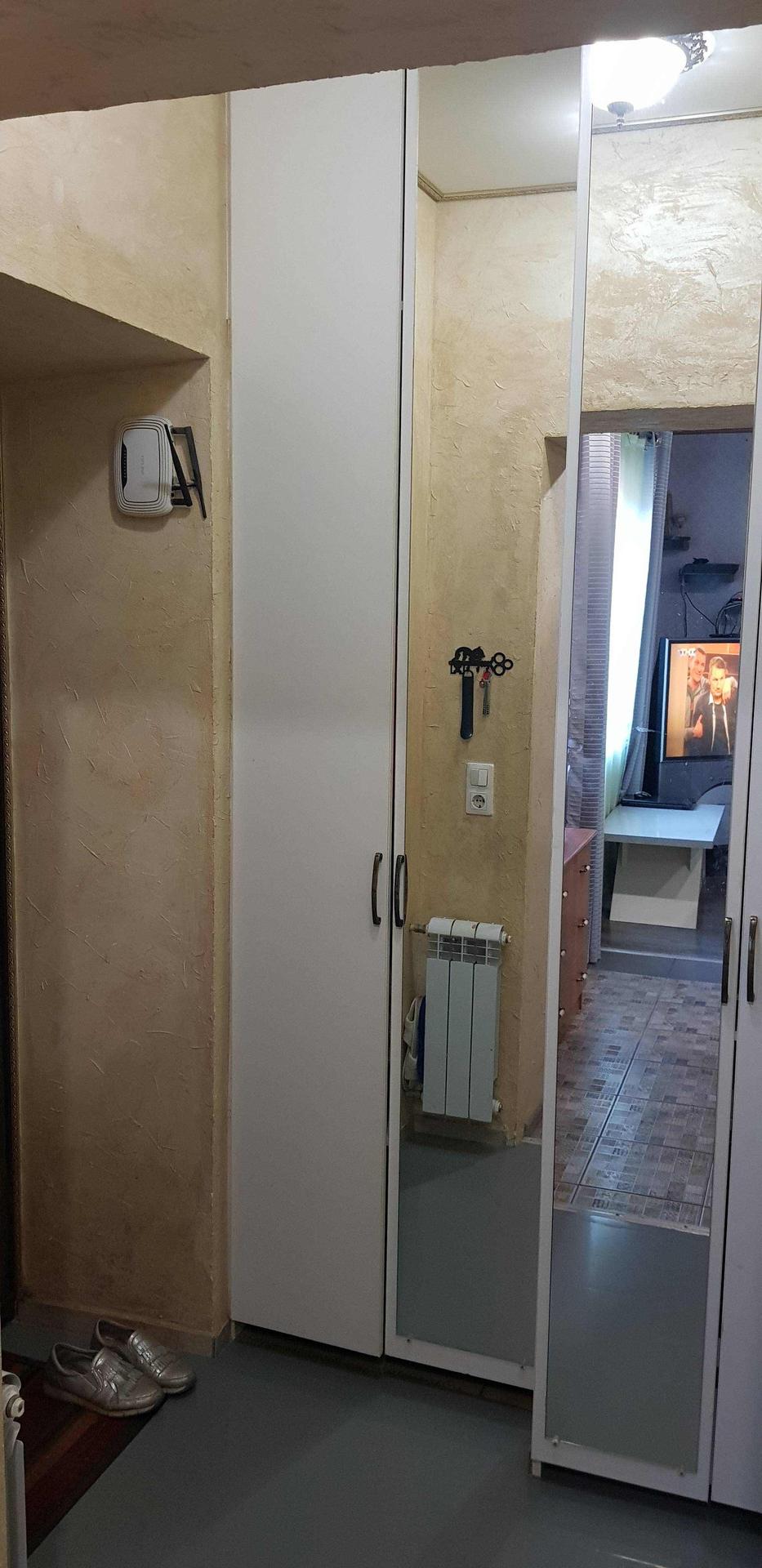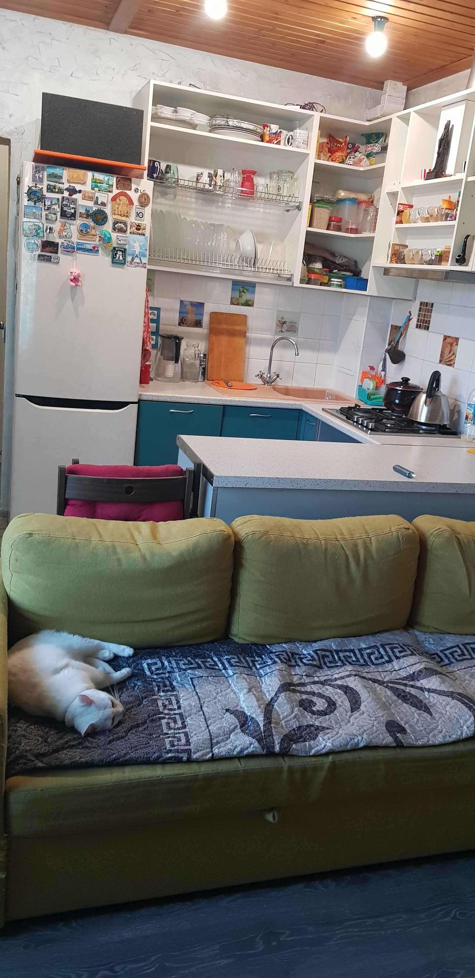 Прихожая, Кухня гостиная, Совмещенный санузел. Оставляю шкафы для одежды и хранения (очень вместительные, удобно для хранения сезонной обуви, различных бытовых предметов), стиральную машину, кухню (включая газовую плиту и посудомоечную машину), диван.